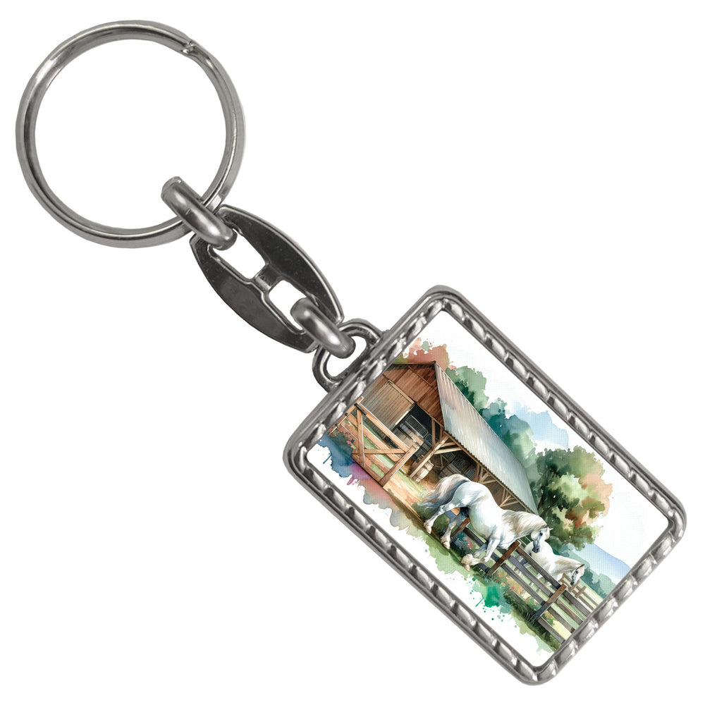 weiße Pferde auf der Koppel Schlüsselanhänger - Standard ist auf Lager und wird versandt, sobald es wieder verfügbar ist