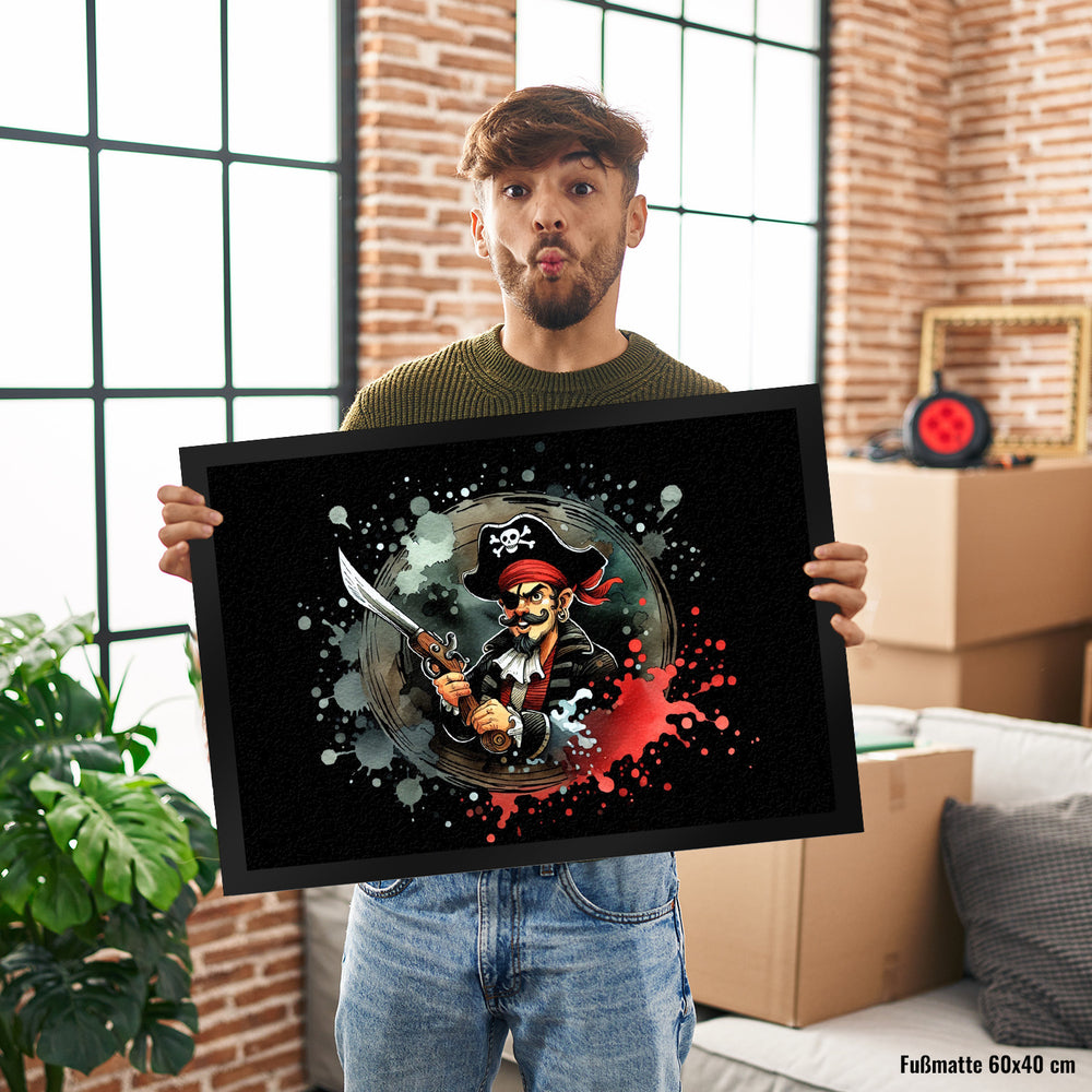 lustiger Pirat Fußmatte in 35x50 cm ohne Rand