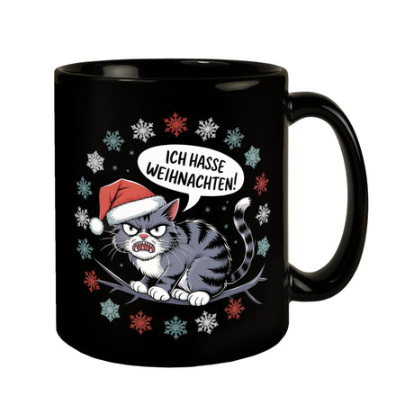 Grimmige Katze mit Weihnachtsmütze - Ich hasse Weihnachten Tasse
