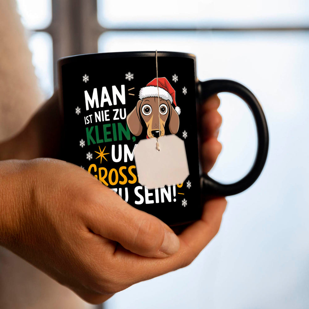 Dackel mit Weihnachtsmütze Tasse - Nie zu klein um großartig zu sein