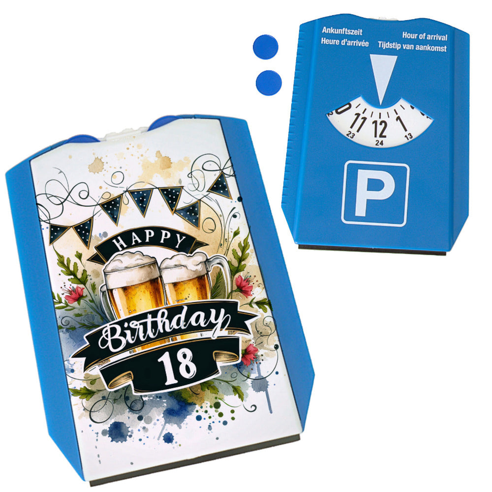 18. Geburtstag Bier Parkscheibe mit Spruch Happy Birthday 18