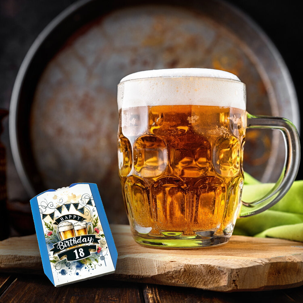 - Mach deinen 18. Geburtstag unvergesslich und zeige allen, dass du jetzt erwachsen bist – zumindest offiziell. Ein Muss für jede Feier, die Bier und Spaß groß schreibt. Prost auf dein neues Lieblingsstück!