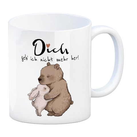 Hase und Bär Kaffeebecher mit Spruch Dich geb ich nicht mehr her