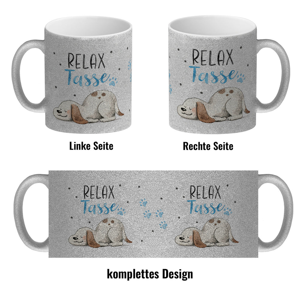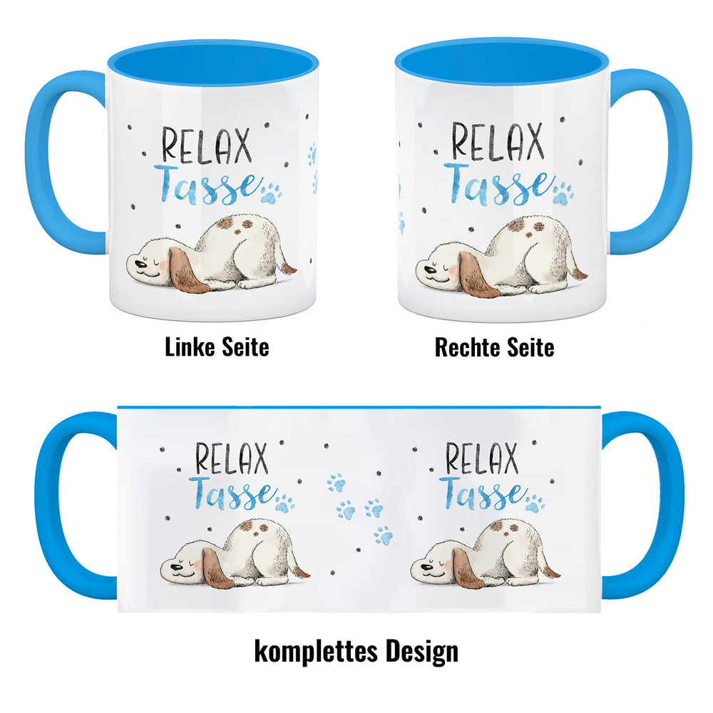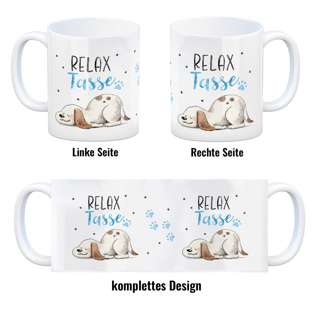 • 1x Relaxter Hund Kaffeebecher mit Spruch Relax Tasse in der gewählten Ausführung