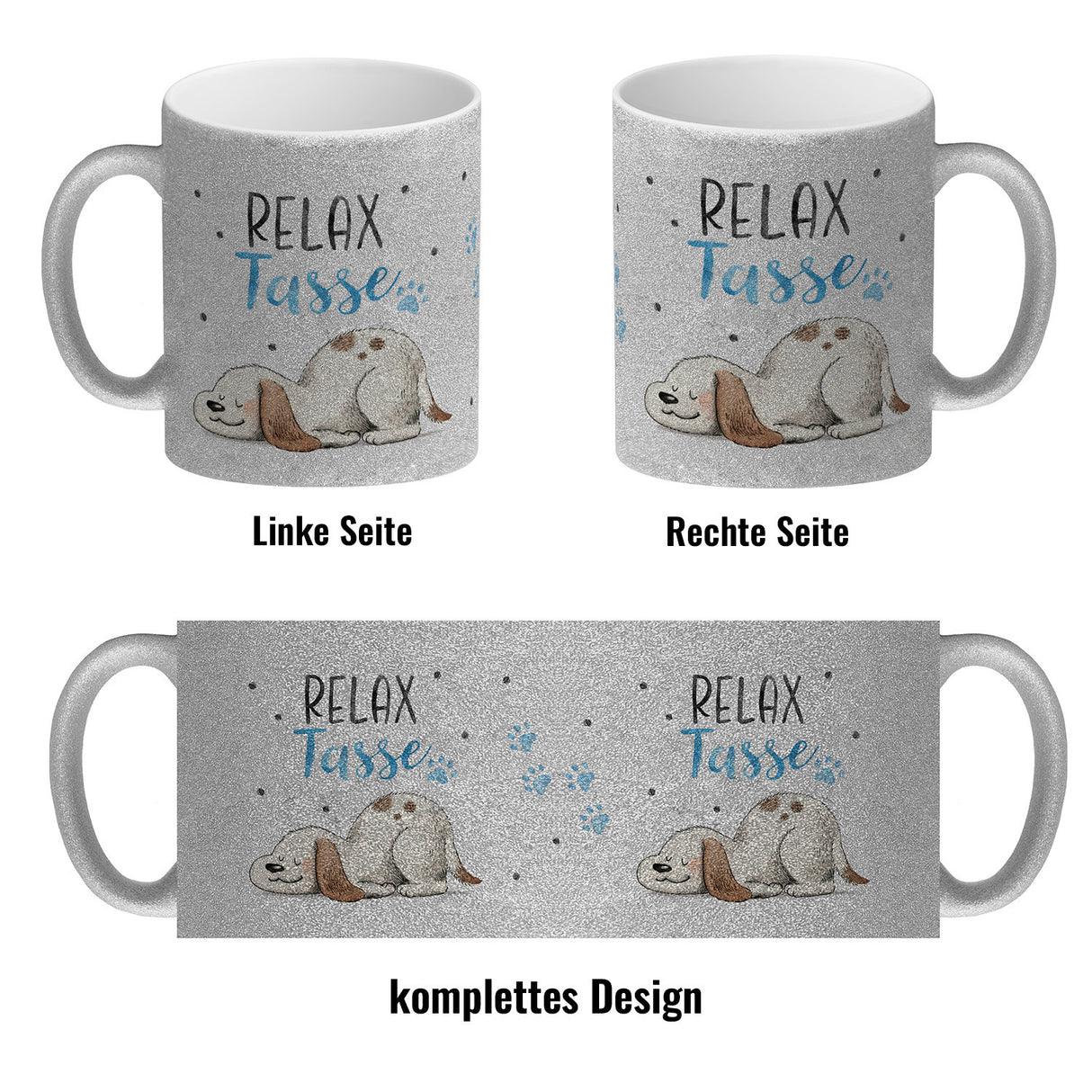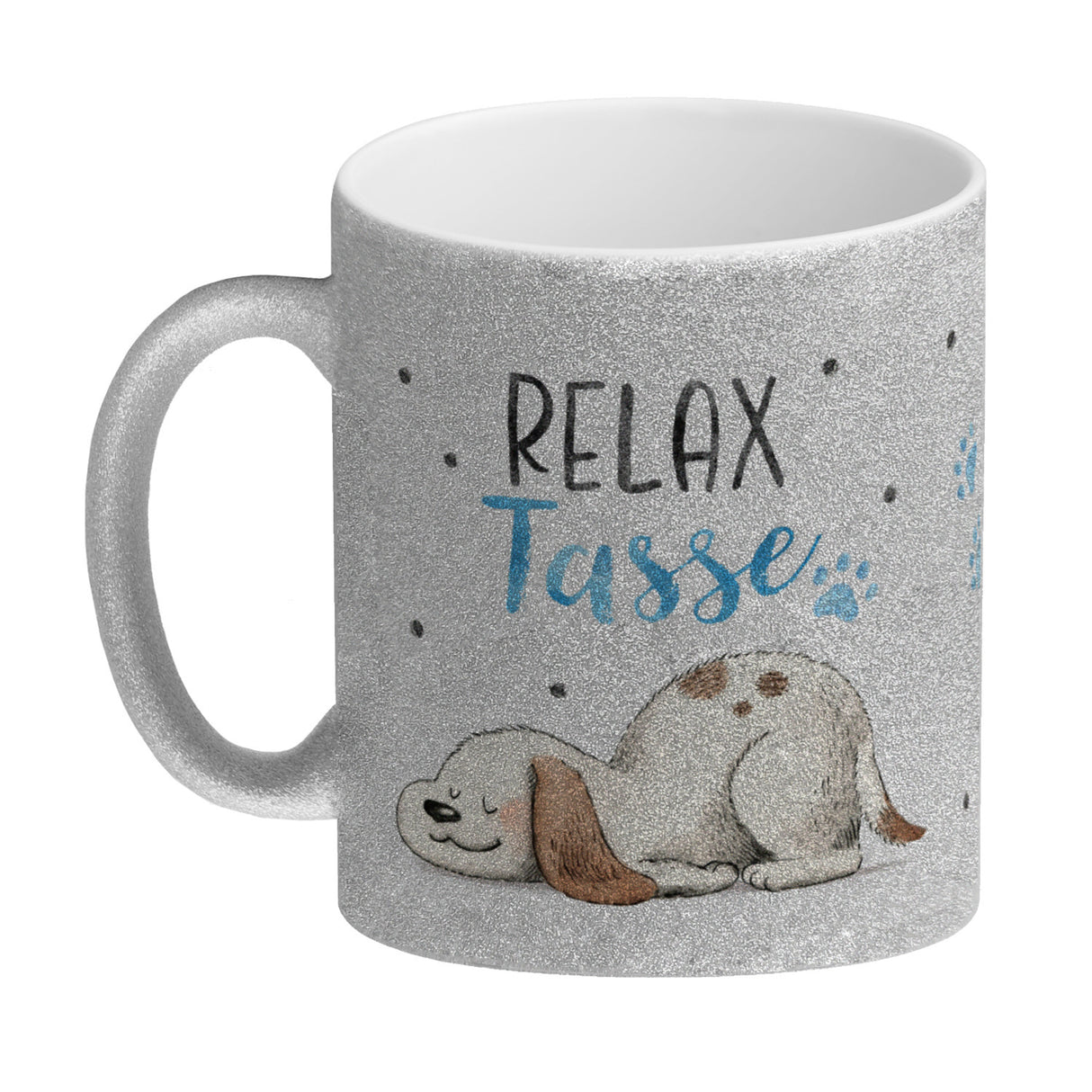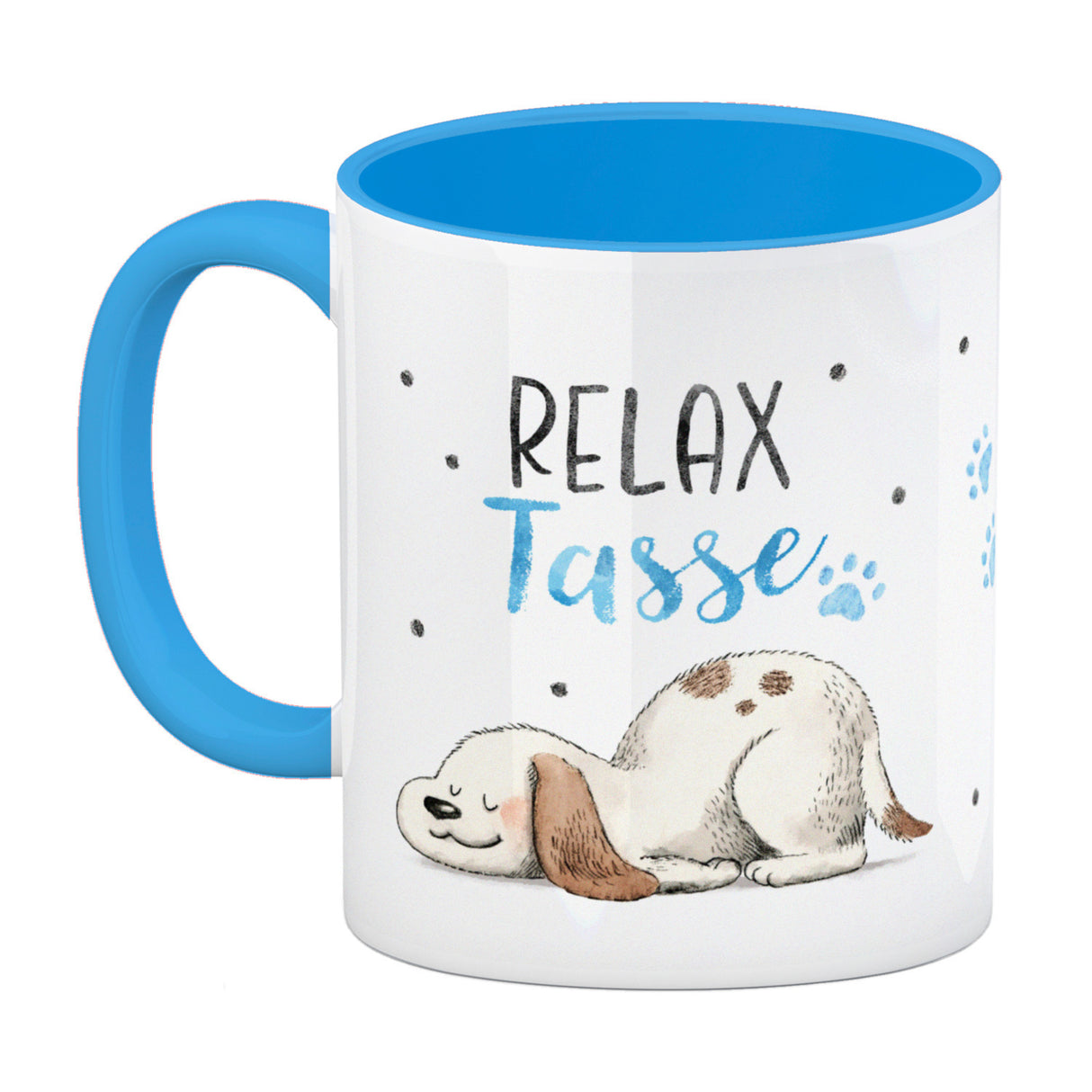 • 1x Relaxter Hund Kaffeebecher mit Spruch Relax Tasse in der gewählten Ausführung