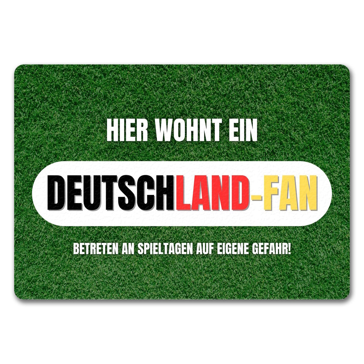Hier wohnt ein Deutschland-Fan Metallschild in 15x20 cm mit Spruch Betreten auf eigene Gefahr