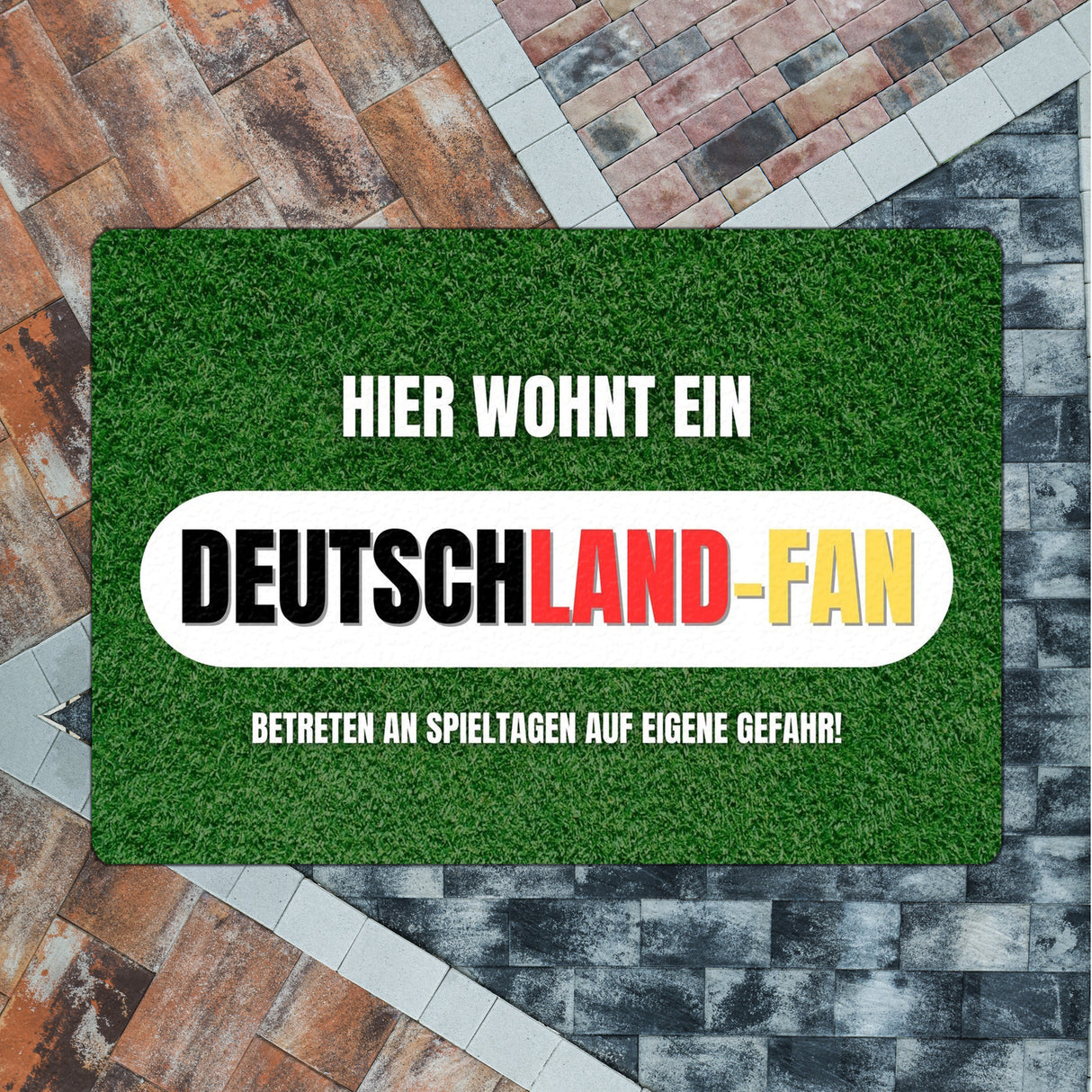 Hier wohnt ein Deutschland-Fan Fußmatte in 35x50 cm mit Spruch Betreten auf eigene Gefahr