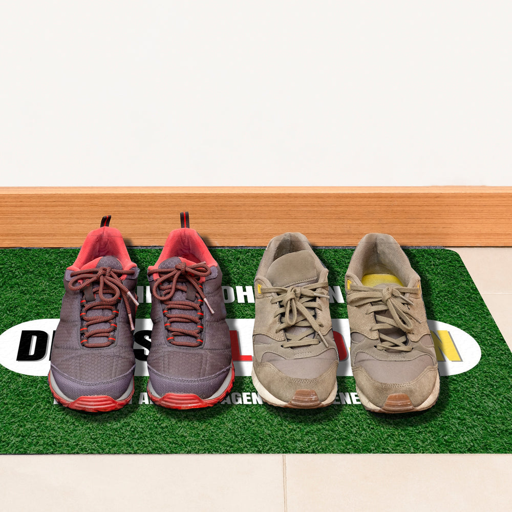 - 1x Hier wohnt ein Deutschland-Fan Fußmatte in 35x50 cm ohne Rand mit Spruch Betreten auf eigene Gefahr in der gewählten Größe