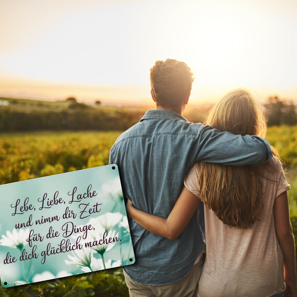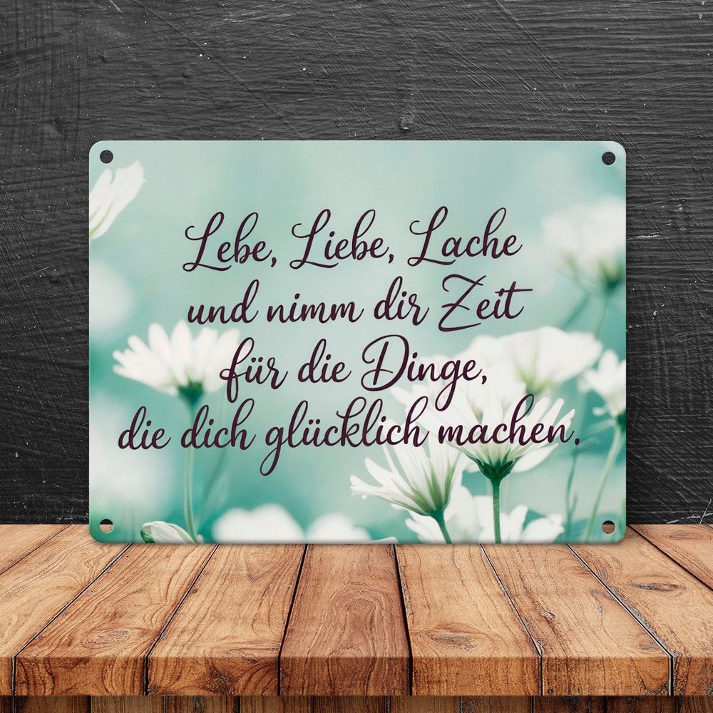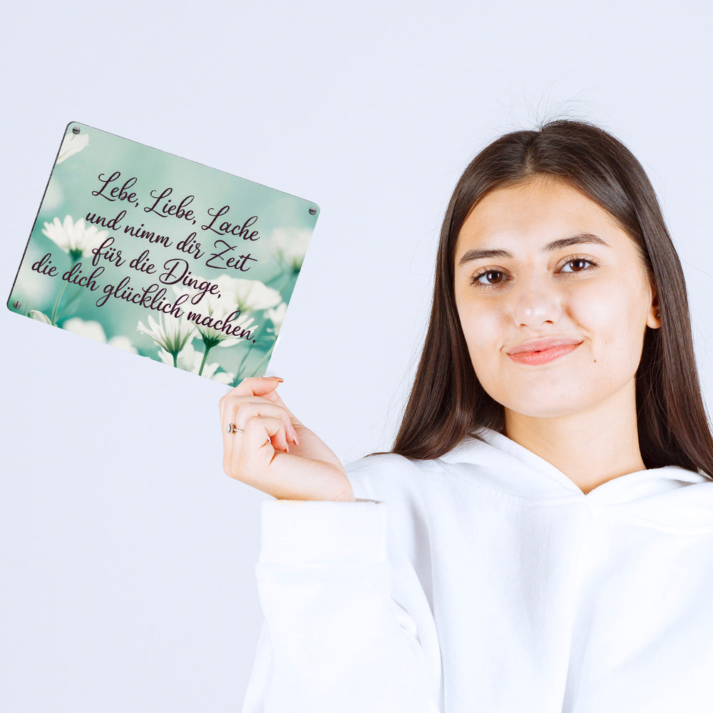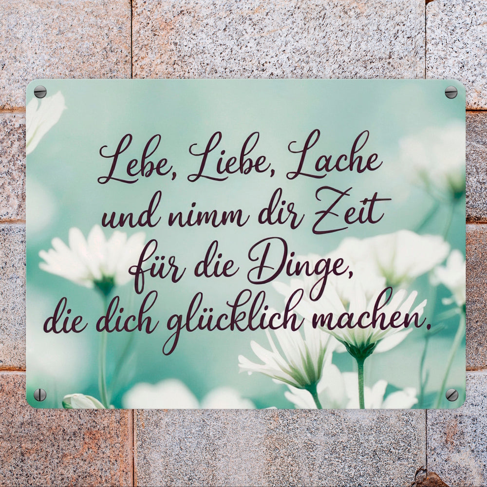 Lebe Liebe Lache - Glücklich sein Metallschild in 15x20 cm