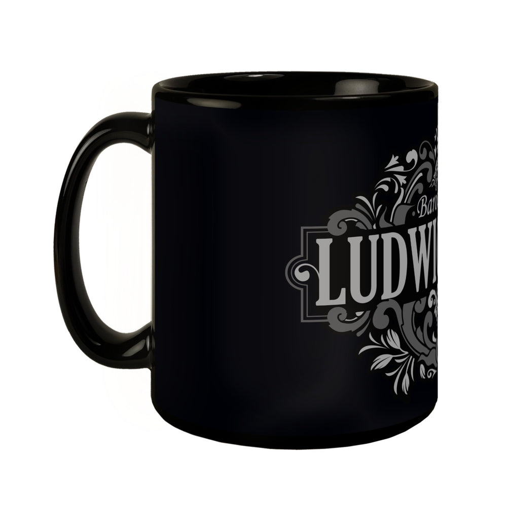 Diese elegante Tasse hebt sich durch ihren schwarzen Hintergrund und kunstvolle, weiße Ornamente hervor, die das Wort "Ludwigsburg" umrahmen. Oben thront majestätisch eine Krone, darunter prangt der Schriftzug "Barockstadt". Das barocke De Hinweise: Fassungsvermögen: ca. 300ml