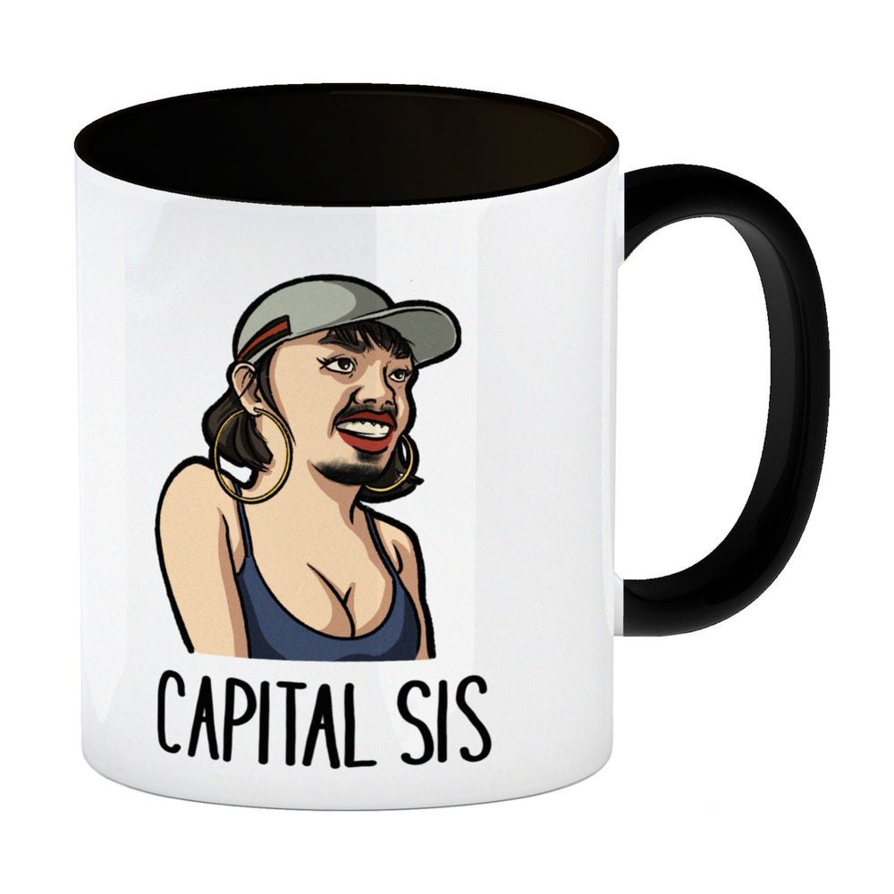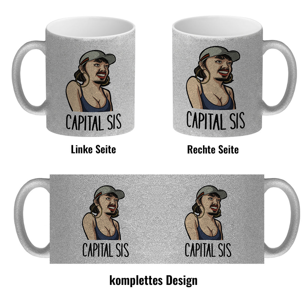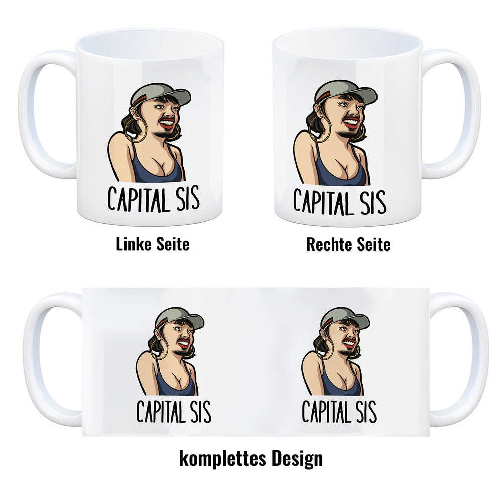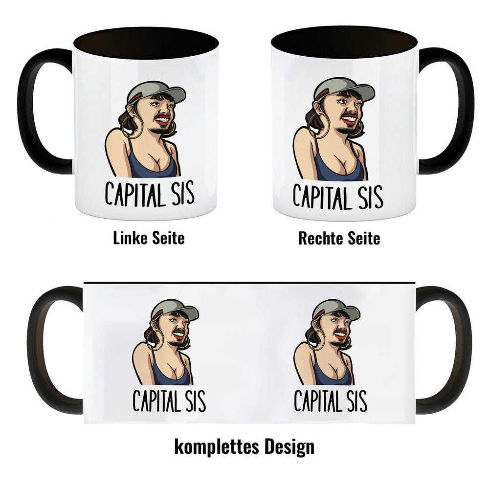 - 1x Rapper-Wortspiel Kaffeebecher Capital Sis Tasse für einen Rap-Fan in der gewählten Ausführung