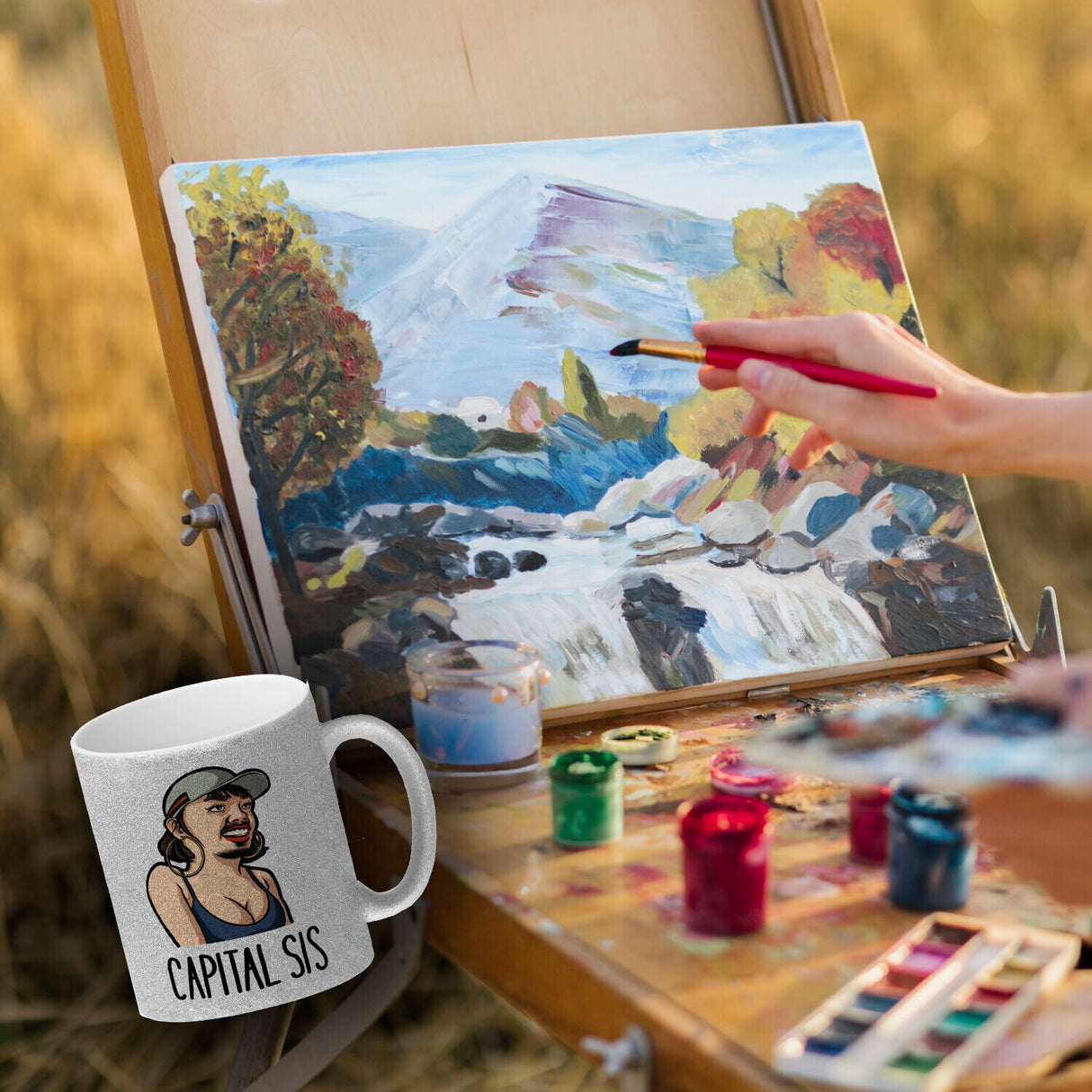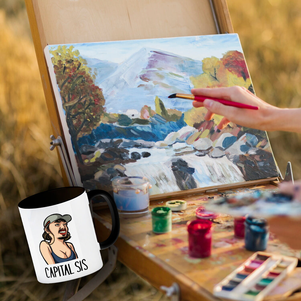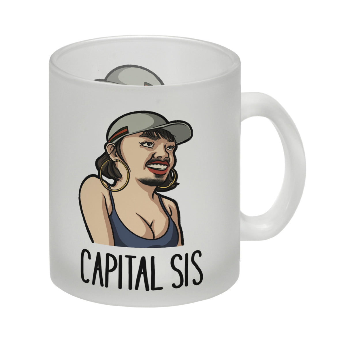 - 1x Rapper-Wortspiel Kaffeebecher Capital Sis Tasse für einen Rap-Fan in der gewählten Ausführung