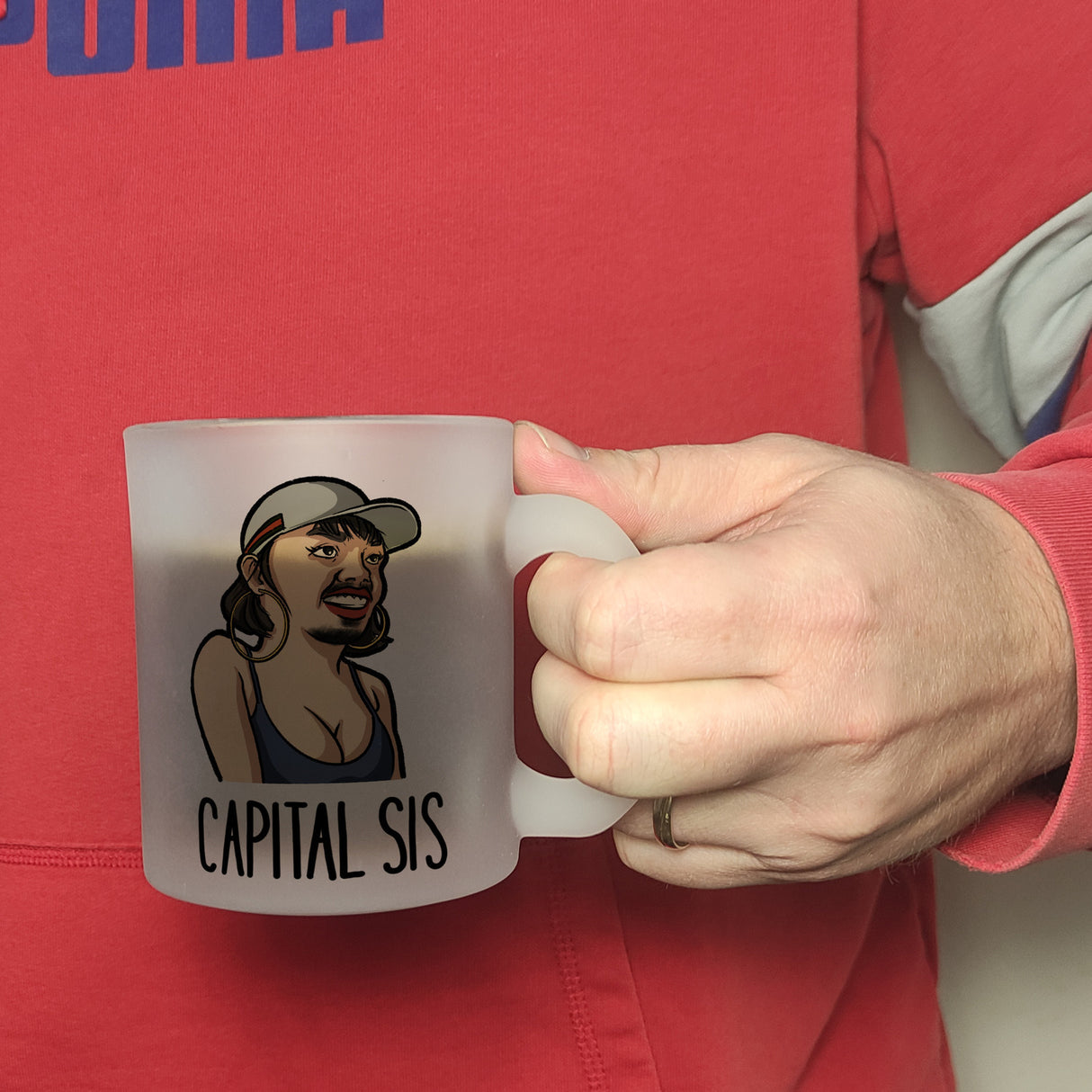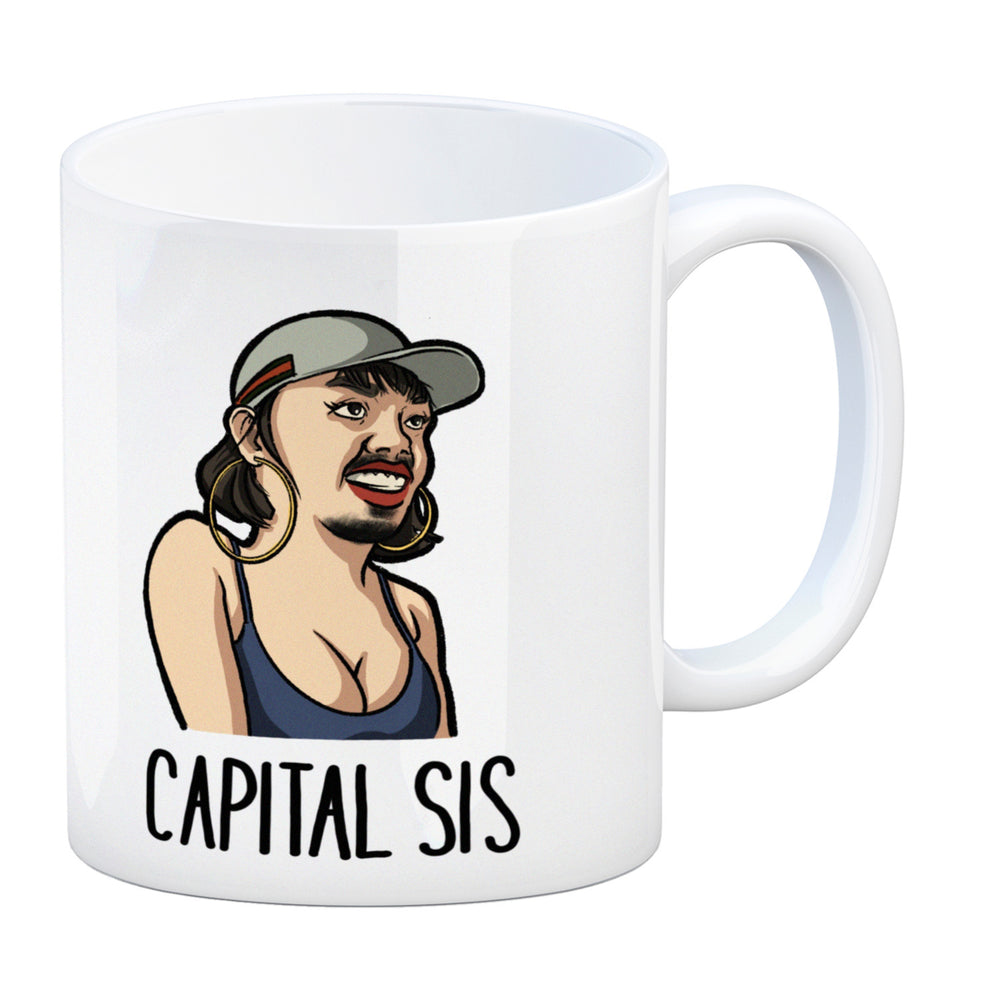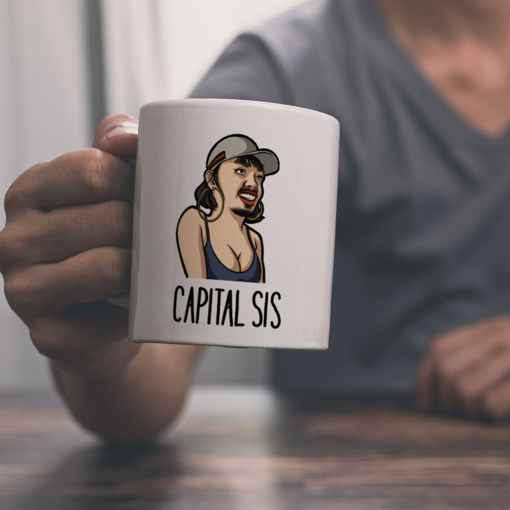 Rapper-Wortspiel Kaffeebecher Capital Sis Tasse für einen Rap-Fan - Weiß ist auf Lager und wird versandt, sobald es wieder verfügbar ist