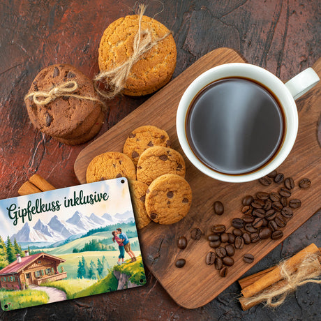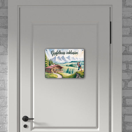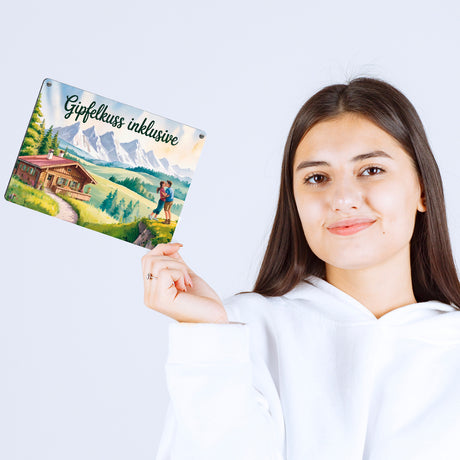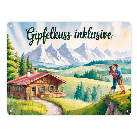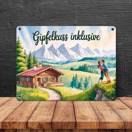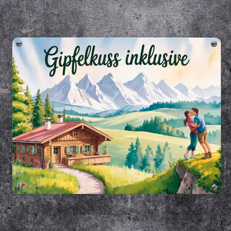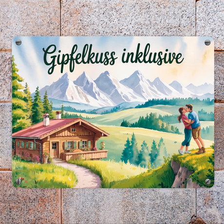 Holzchalet Gipfelkuss Metallschild in 15x20 cm Allgäu