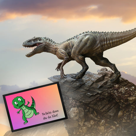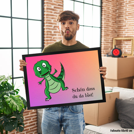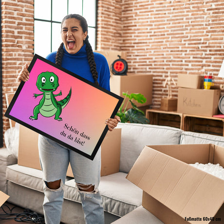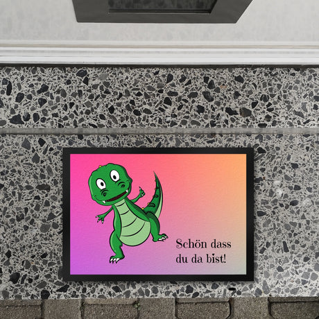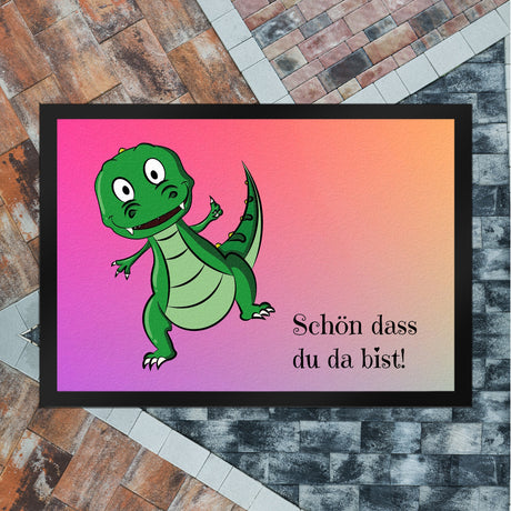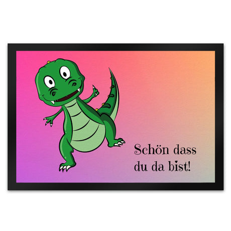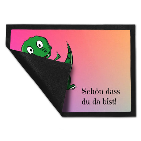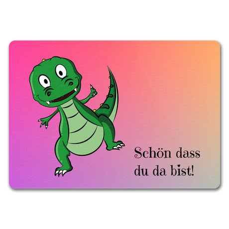 T-Rex Fußmatte in 35x50 cm mit Spruch Schön dass du da bist