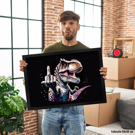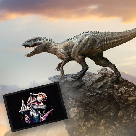 Vorsicht schlechte Laune oder gute Laune Türhänger mit T-Rex Dino und grün