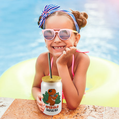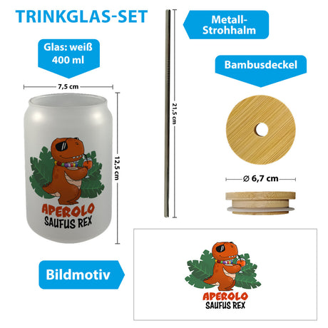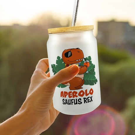 Ab €12,95Grundpreis /Nicht verfügbarAuf LagerAperolo Saufus Rex Trinkglas mit Bambusdeckel Aperol T-Rex