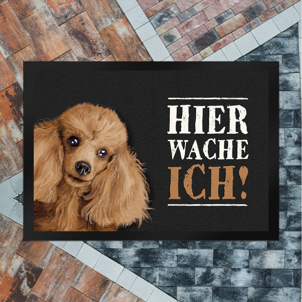 - 1x Hier wache ich! Pudel Fußmatte in der gewählten Größe