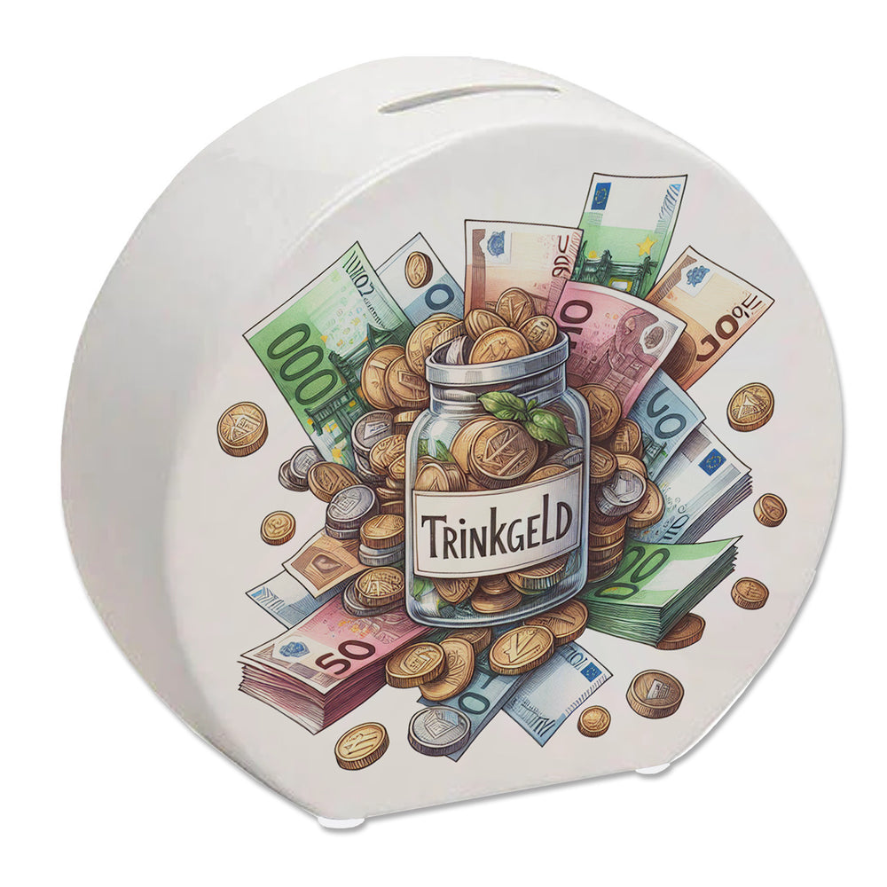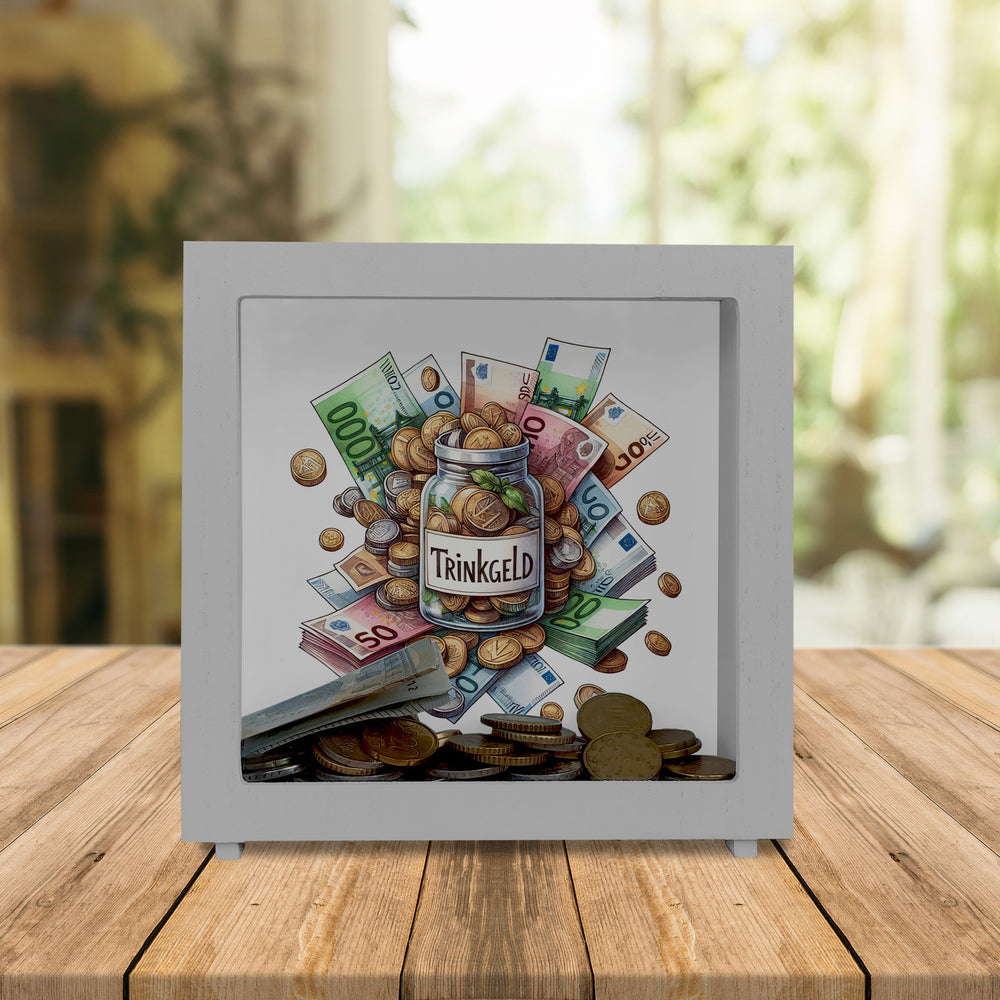 Bist du bereit, deinen finanziellen Horizont zu erweitern und dabei noch für Schmunzler und gute Laune zu sorgen? Unsere Trinkgeld Spardose ist genau das richtige Gadget für alle, die ihr Trinkgeld stilvoll und humorvoll aufbewahren möchten. Diese einzigartige Spardose ist ideal für Friseure, Restaurantangestellte, Ladenbesitzer und generell für jeden, der in seiner Arbeit mit Trinkgeld belohnt wird.Mit dem kecken Spruch „Trinkgeld” und der bunten Szenerie aus Geldscheinen und Münzen bringt sie Farbe und Spaß in deinen Arbeitsalltag. Doch das ist noch nicht alles! Unsere Spardose bietet dir mehr als nur einen Platz für dein hart verdientes Trinkgeld. Ob du das extra Bargeld für eine besondere Anschaffung sparst, einen Traumurlaub planst oder einfach einen Notgroschen zur Seite legen möchtest – diese Spardose ist dein stilvoller Begleiter.Und das Beste: Dank ihrer universellen Gestaltung eignet sie sich für jegliche Währung. Egal ob Euro, Dollar, Yen oder Pesos – hier findet jedes Geldstück seinen Platz. Diese Trinkgeld Spardose ist auch ein großartiges Geschenk für Freunde, Familie oder Kollegen. Sie vereint Funktionalität mit einem humorvollen Design, das bei jedem Beschenkten ein Lächeln ins Gesicht zaubern wird. Schluss mit langweiligen Geschenken – überrasche deine Liebsten mit einer Spardose, die nicht nur praktisch, sondern auch ein echter Hingucker ist!