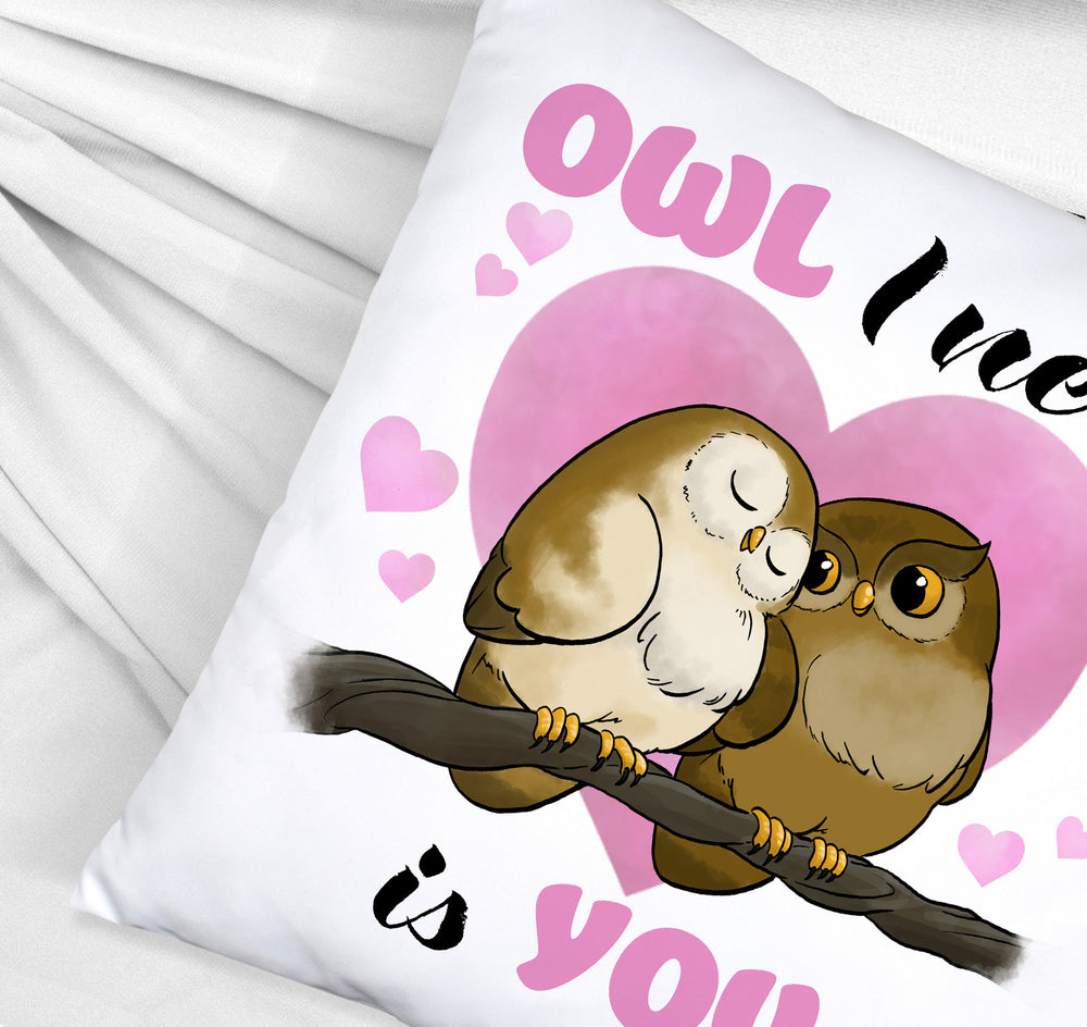 • Wer sagt, Liebe kann man nicht kuscheln? Mit dem Eulenpaar Kissen, das laut "Owl I need is you" flüstert, wird jedes Sofa zur Liebeslaube. Zwei Eulen, Turteltäubchen-Style, verbringen Ewigkeit auf einem Ast – schmusefest verankert im Herz des Anderen.