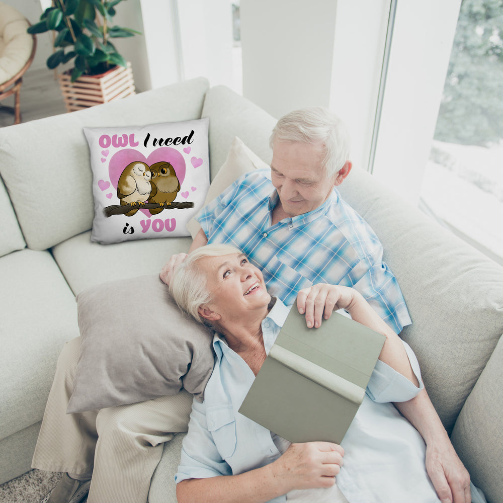 Eulenpaar Kissen mit Spruch Owl I need is you