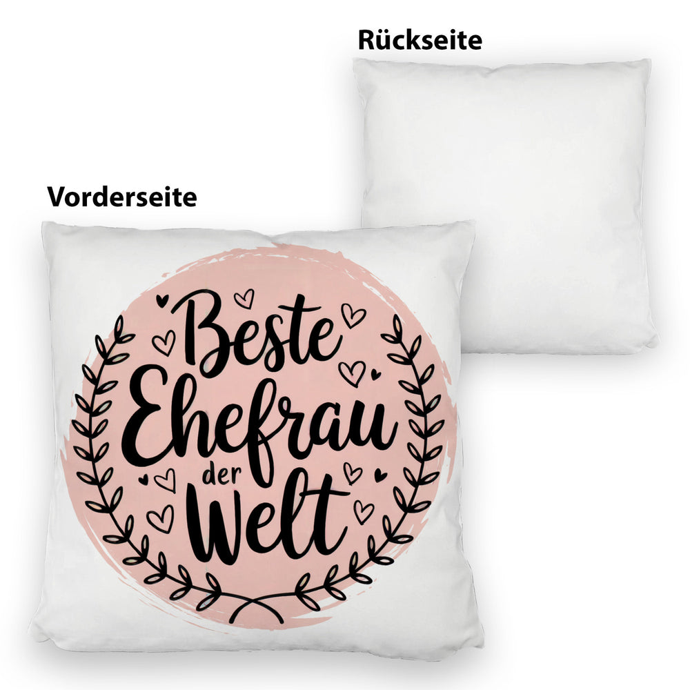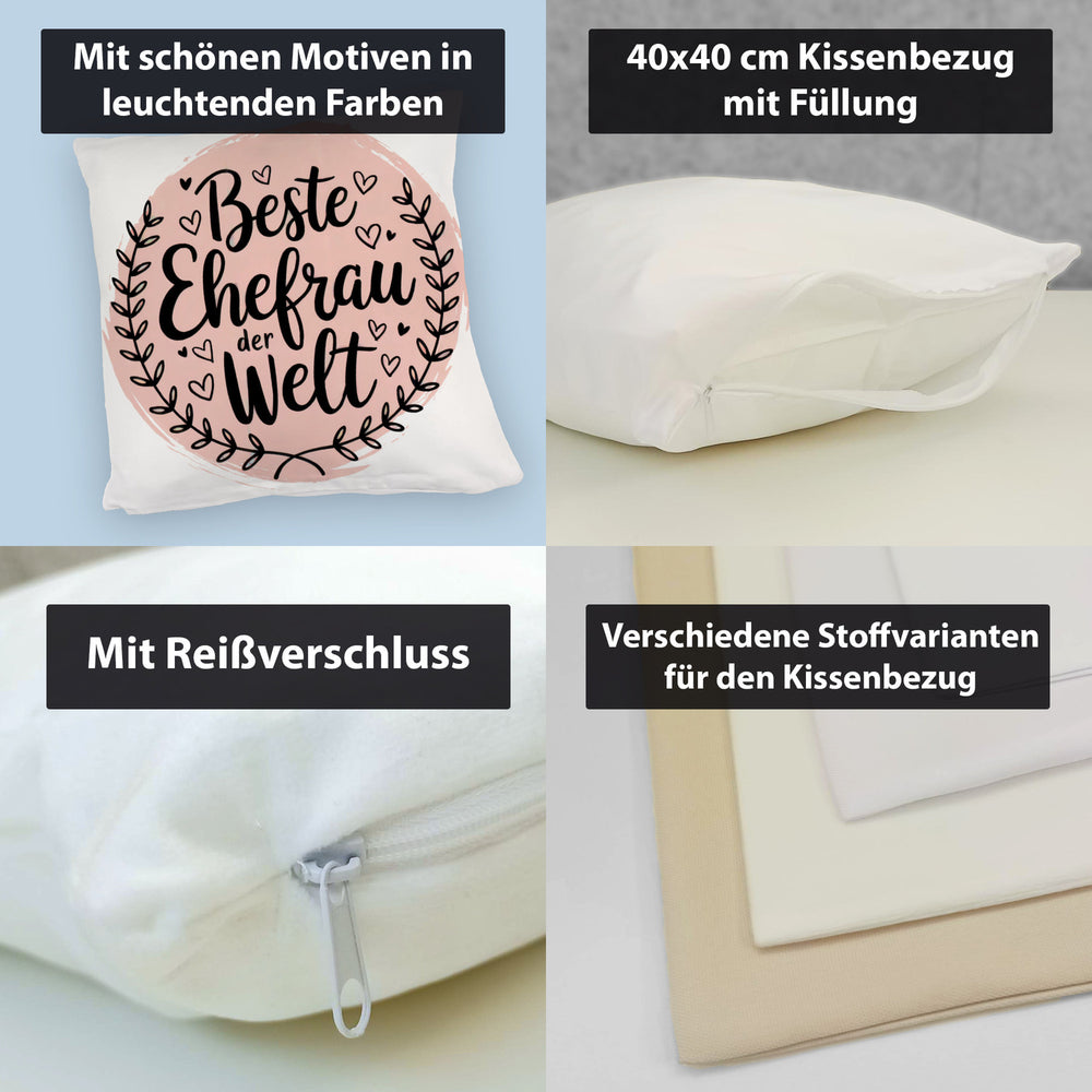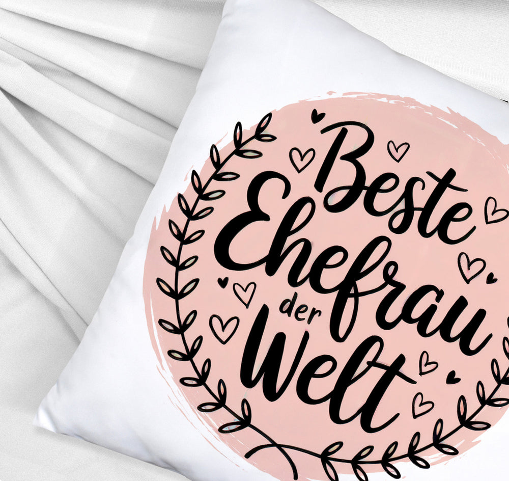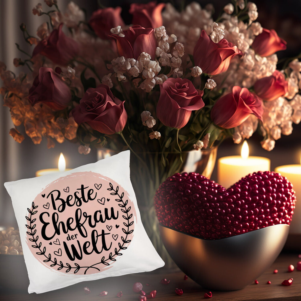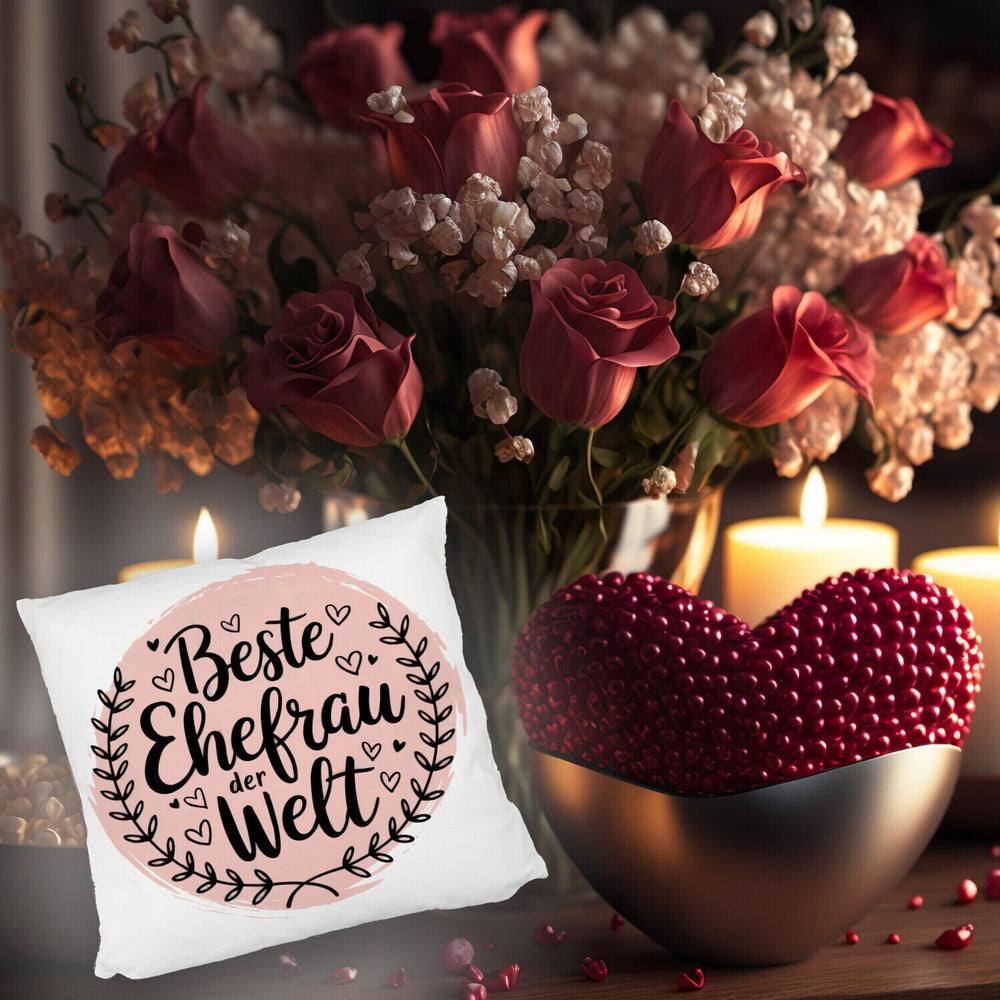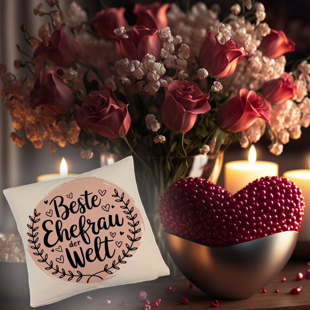 - 1x Beste Ehefrau der Welt Liebevolle Botschaft Kissen in der gewählten Ausführung