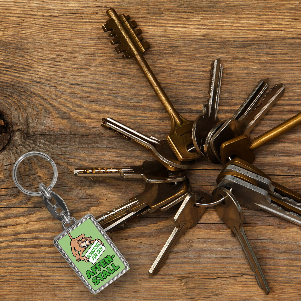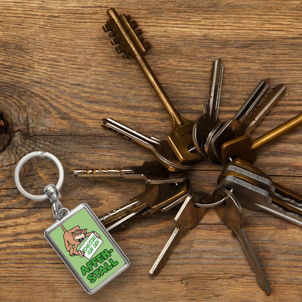 Affe Schlüsselanhänger mit Spruch: Schlüssel für den Affenstall - Standard ist auf Lager und wird versandt, sobald es wieder verfügbar ist
