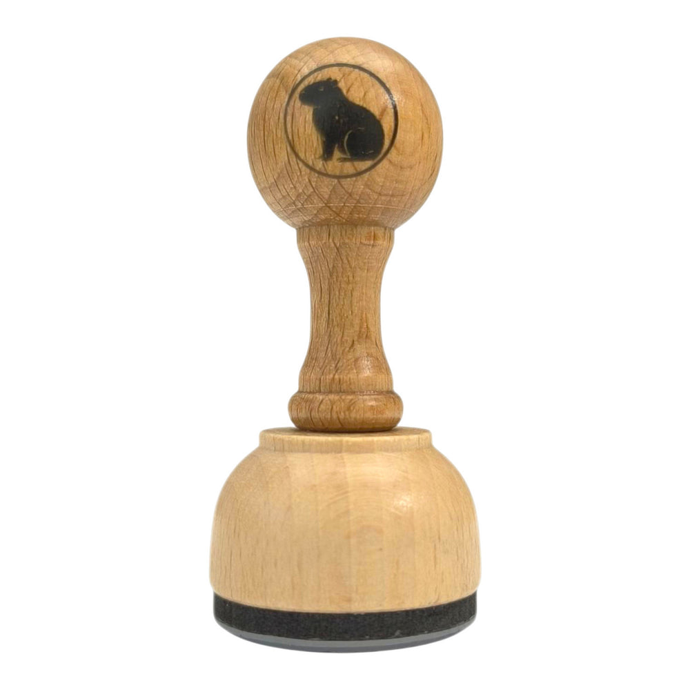 - Der Stempel wurde meisterhaft aus Holz gefertigt und besticht durch sein rundes Design. Mit einem komfortablen Griff versehen, zeigt er auf dem Bild ein entzückendes Capybara in einem runden Rahmen. Das Bild ist 3,5 cm groß und perfekt für kreative Stempelabenteuer geeignet!