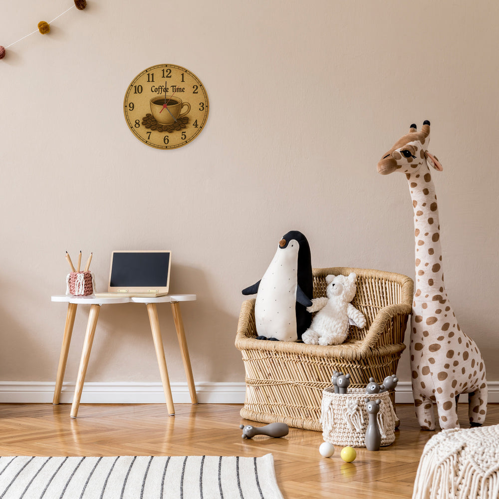 - Lass Dich von der Qualität dieser liebevoll designten und bedruckten Wanduhr überzeugen. Verleihe Deinem Zuhause einen Hauch von Nostalgie und genieße den Retro-Charme jeden Tag. Greife jetzt zu und mache die Coffee Time Wanduhr zu Deinem persönlichen Dekor-Highlight!