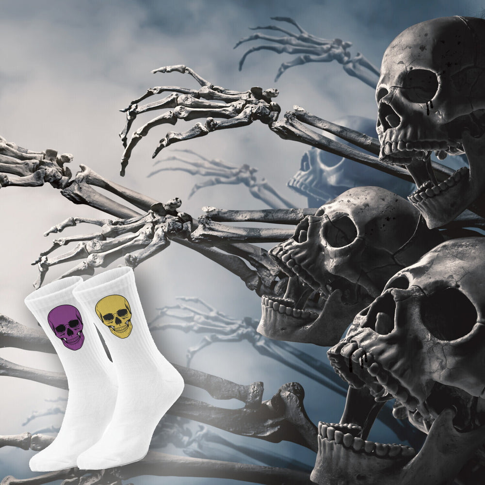 epicsocks Colorful Skulls Komplementärschädel gelb-lila Socken in 37-41 im Paar