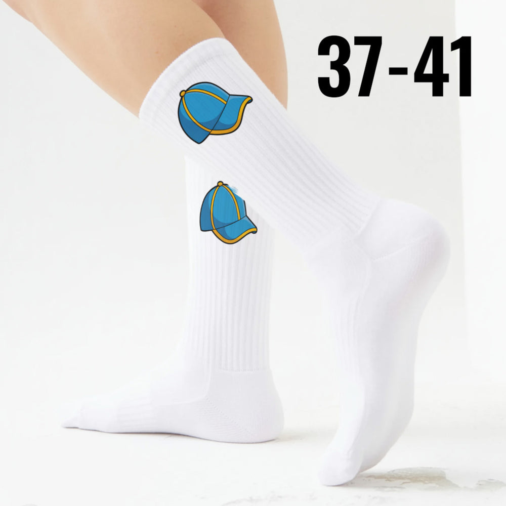 • Die epicsocks Top Spin Basecap Socken sind weiße Tennissocken, die mit einem lustigen blauen Basecap-Motiv auffallen. Sie vereinen Sportlichkeit und Humor in einem stylischen Design, das sowohl auf dem Tennisplatz als auch im Alltag für Hingucker sorgt.
