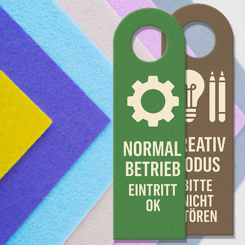 - Einzeln erhältlich oder als 3er- und 10er-Sparset. Aus hochwertigem Filz mit praktischem Loch für die Türklinke. Mit Sorgfalt bedruckt in unserer Türhänger-Manufaktur in Deutschland.
