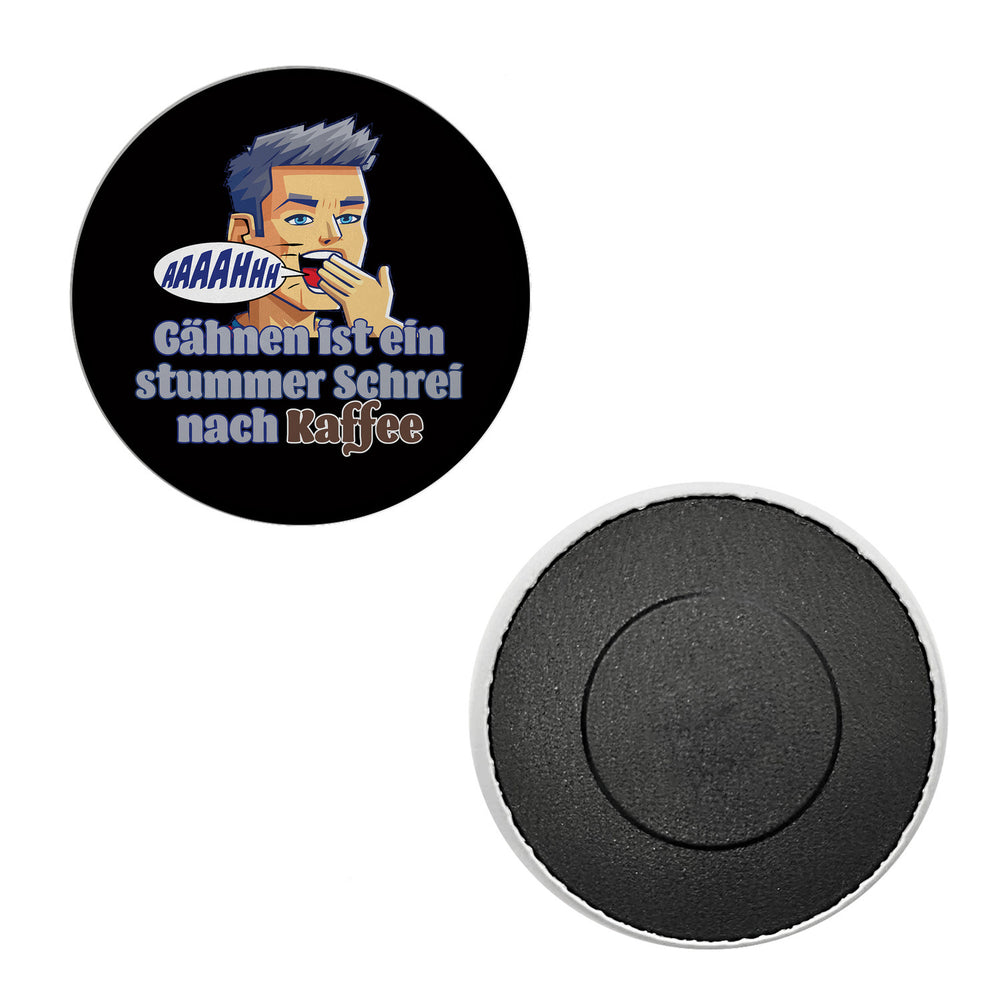 - 1x Müder Mann Magnet rund mit Spruch: stummer Schrei nach Kaffee in der gewählten Ausführung