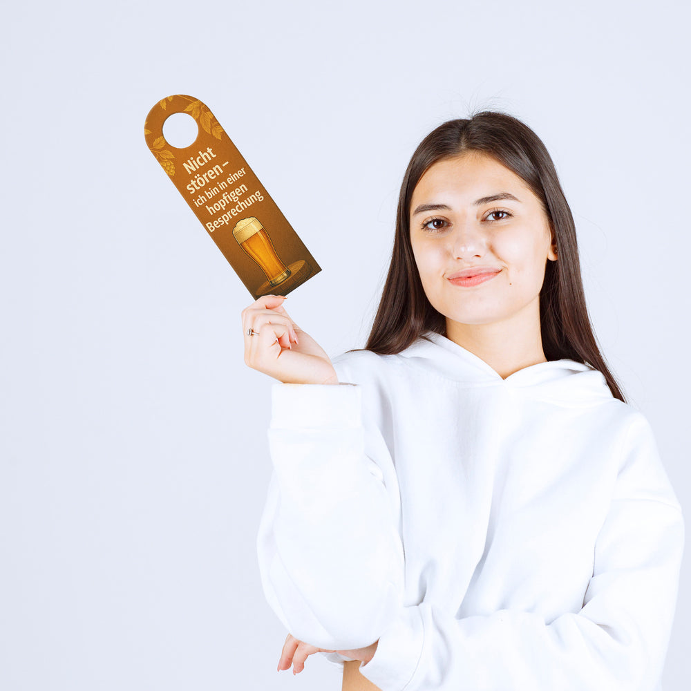 - 1x Nicht stören ich bin in einer hopfigen Besprechung Türhänger für Bierfans in der gewählten Setgröße