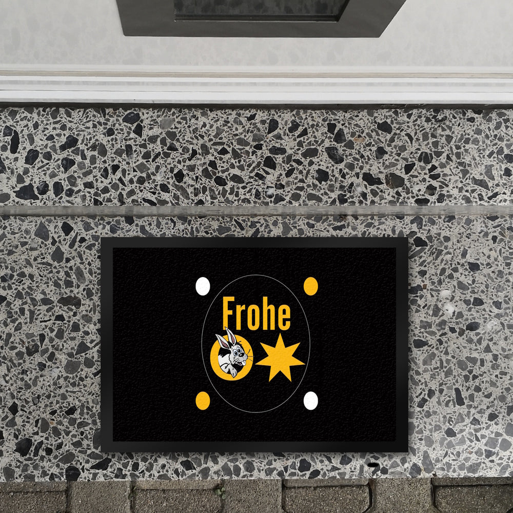 - Lass deine Haustür zum Osterhighlight werden! Unsere Fußmatte ist aus hochwertigem Material gefertigt, mit Liebe designed und bedruckt. Hol dir jetzt die fröhliche Türmatte und sorge für Osterstimmung bei Groß und Klein. Beständige Qualität trifft auf witzigen Charme – ein Must-Have für jede Osterdekoration!