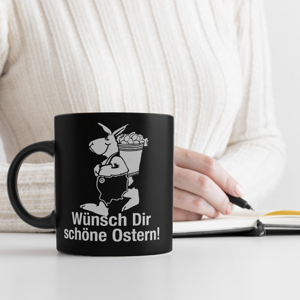 - Lieferumfang: 1x Osterhase Tasse in Schwarz mit Spruch: Wünsch dir schöne Ostern!