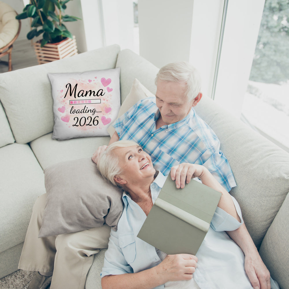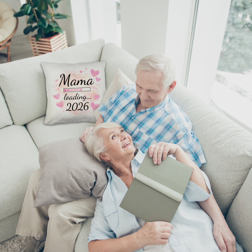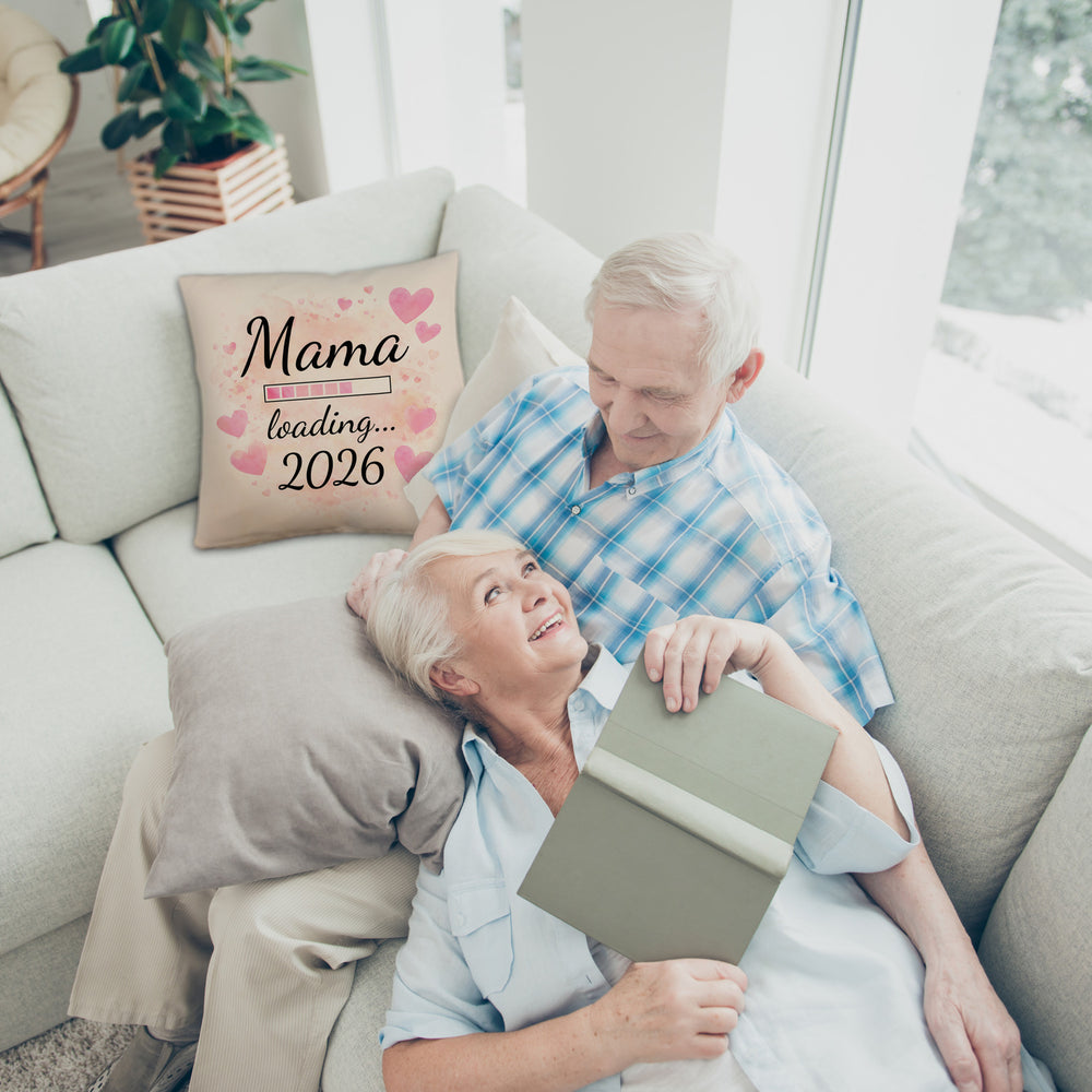 - Dieses charmante Kissen besitzt einen zarten, rosa Hintergrund, verziert mit unzähligen rosa Herzformen. Im Zentrum steht der lustige Spruch "Mama loading... 2026", geschrieben in stilvoller Kursivschrift. Ein raffinierter Fortschrittsbalken darunter symbolisiert die aufregende Reise zur Mutterschaft, perfekt als Überraschung für werdende Mütter.