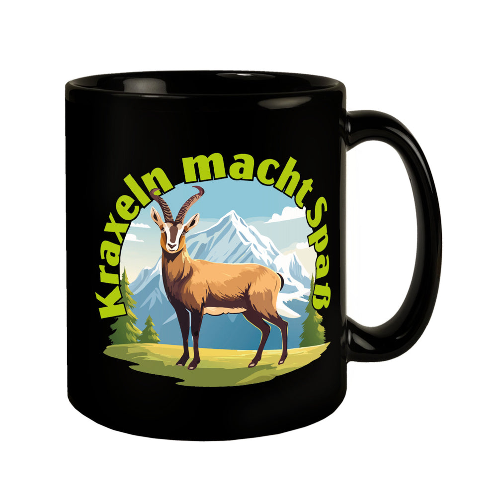 - Lieferumfang: 1x Steinbock Tasse in Schwarz mit Spruch: Kraxeln macht Spass