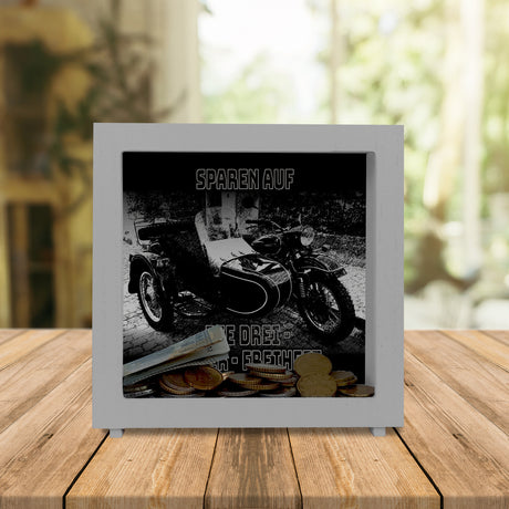 Ab €12,95Grundpreis /Nicht verfügbarAuf LagerOldtimermotorrad mit Beiwagen Spardose mit Spruch: Sparen auf die drei Räder Freiheit