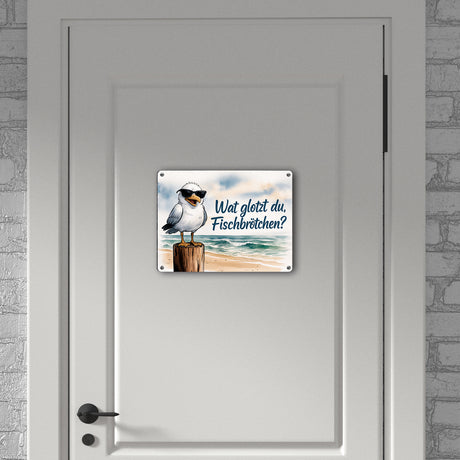 Ab €8,95Grundpreis /Nicht verfügbarAuf LagerWat glotzt du, Fischbrötchen? Möwe mit Sonnenbrille Metallschild in 15x20 cm