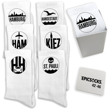 €22,95Grundpreis /Nicht verfügbarAuf Lagerepicsocks Hamburg Vibes Socken in 37-41 im 6er Set in Geschenkdose im 6er Set in Geschenkbox