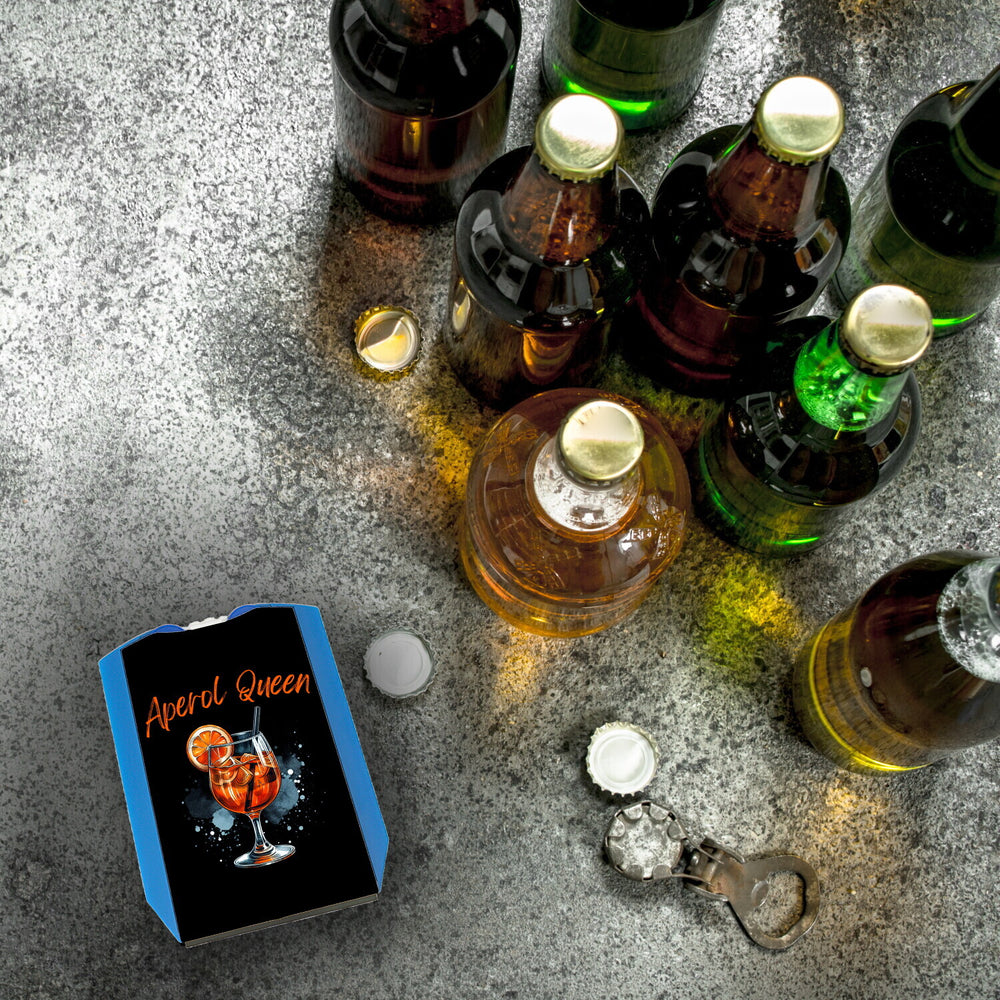 Wer hat gesagt, dass Parken langweilig sein muss? Für den flotten Flitzer mit einem Sinn für Humor und einer Schwäche für den goldenen Sonnenuntergang in einem Glas, kommt hier die Rettung aus der grauen Parkplatz-Tristesse: die Aperol Queen Parkscheibe! Dieses Meisterwerk der Zeitmessung ist für alle gedacht, die ihre Liebe zu Italiens beliebtestem Aperitif nicht nur auf der Terrasse, sondern auch im Autoalltag zur Schau tragen möchten.Mit der Aperol Queen Parkscheibe in Trinkglas-Optik zeigt ihr nicht nur, dass ihr pünktlich seid, sondern auch, dass ihr Stil und einen erlesenen Geschmack für die feineren Dinge im Leben habt. Diese Parkscheibe tarnt sich als üppig gefülltes Cocktailglas, komplett mit Eiswürfeln, einer Orangenscheibe am Rand und natürlich dem erfrischenden, leuchtend orangen Aperol Spritz. Stellt euch vor, wie die neidischen Blicke der Passanten euch treffen, während ihr lässig eure Parkscheibe einstellt und sie sich fragen, ob es fünf Uhr ist und Zeit für einen Afterwork-Drink. Überraschung - es ist immer Zeit für Aperol! Und wenn ihr auf der Suche nach dem perfekten Geschenk für den Freund oder die Freundin seid, der/die schon alles hat, dann ist die Aperol Queen Parkscheibe das ideale Präsent. Es ist praktisch, es ist originell, und es verbreitet sofort sommerliche Laune. Schenkt es zur nächsten Einweihungsparty, dem Geburtstag des besten Kumpels oder als Wichtelgeschenk im Büro - mit dieser Parkscheibe wird jeder Parkvorgang zur Happy Hour. Prost aufs Parken!