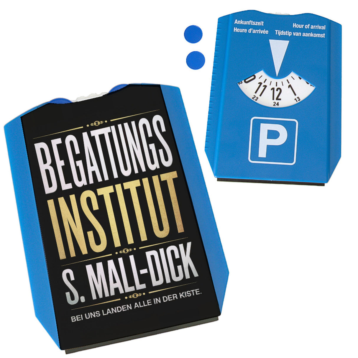 - Diese Parkscheibe ist ein echtes Unikat! Mit schwarzem Hintergrund und silbernen sowie goldenen Buchstaben sorgt sie garantiert für Lacher. Der freche Schriftzug "BEGATTUNGSINSTITUT" und der Name S. Mall-Dick machen sie unwiderstehlich. Dein Auto wird zum Hingucker!