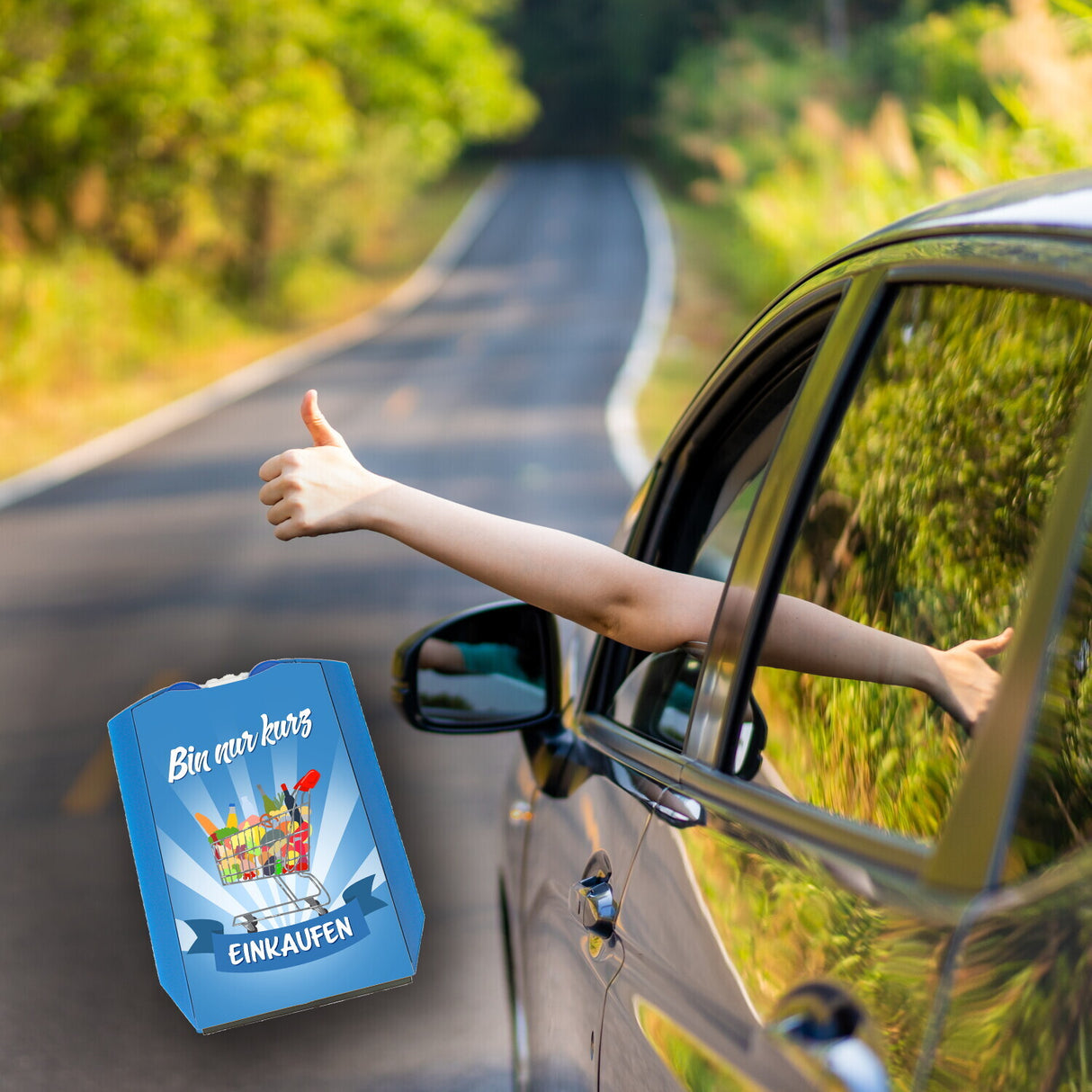 Bin nur kurz beim Bäcker Parkscheibe mit zwei Einkaufswagenchips