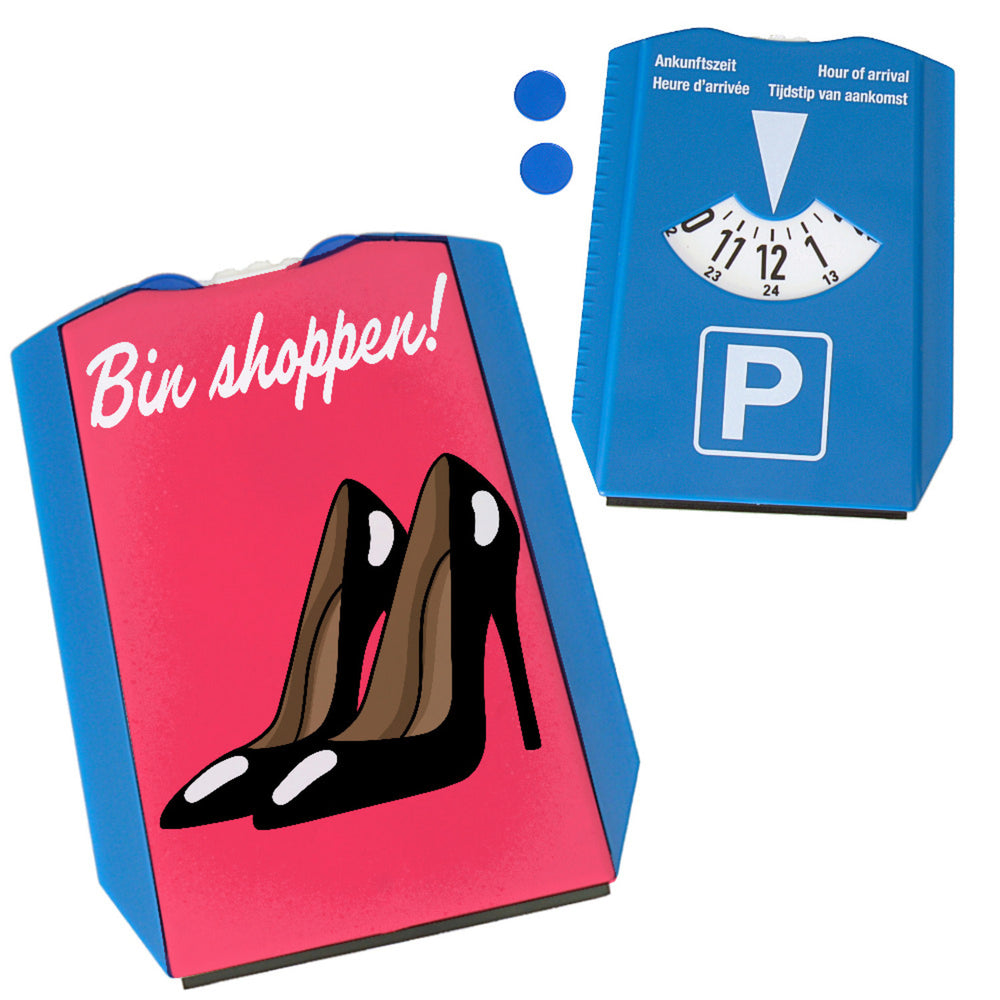- Lieferumfang: 1x Bin Shoppen Parkscheibe mit High Heels-Motiv und 2 Einkaufswagenchips