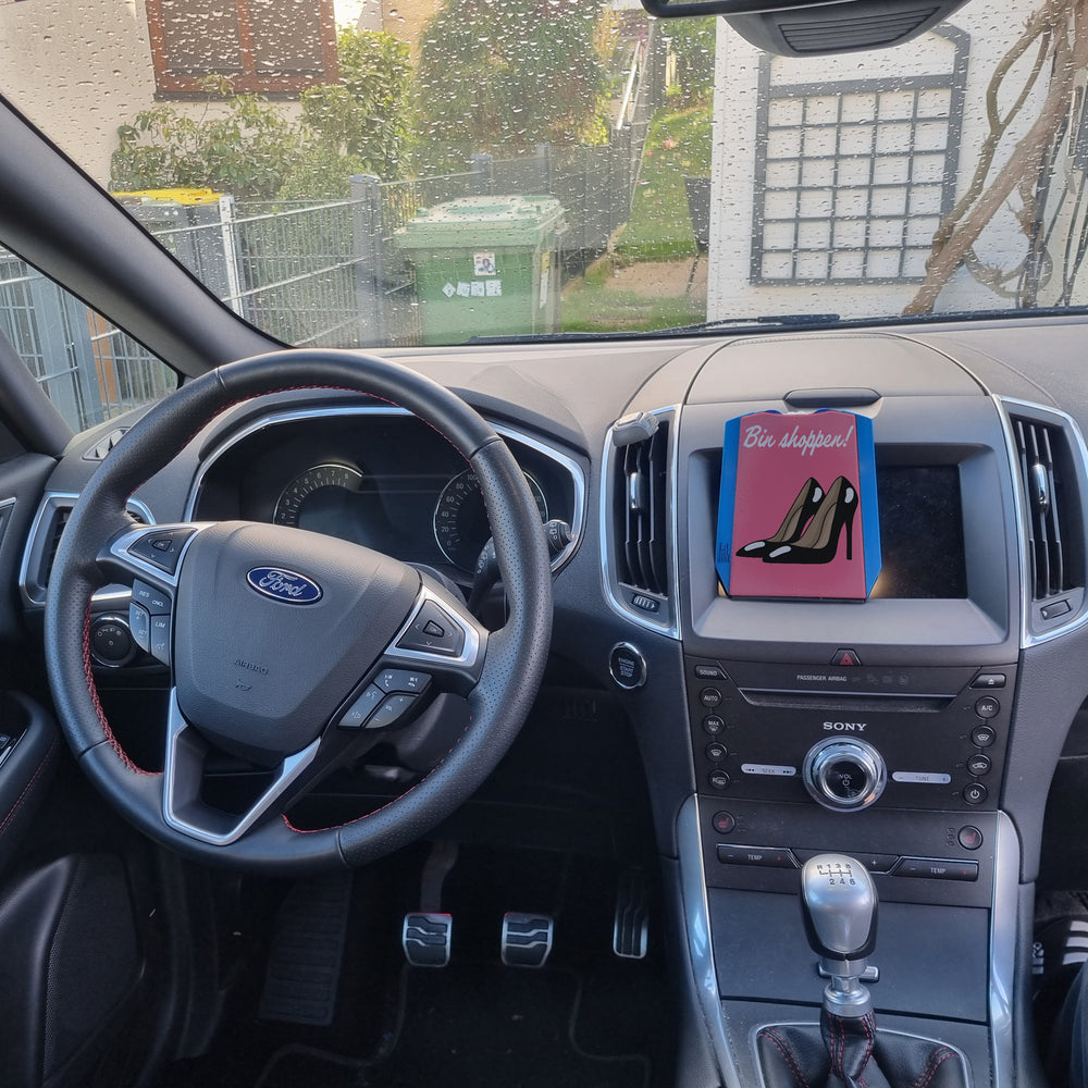 Die perfekte Parkscheibe für Frauen die gerne shoppen gehen. Die auffällige Rückseite eignet sich für Shoppingqueens, die am liebsten im nächsten Modegeschäft nach neuen Kleidern stöbern. Hinweise: Material: Kunststoff / gültig nach StVO / mit 2 Einkaufswagenchips / Größe: ca. 15x12 cm