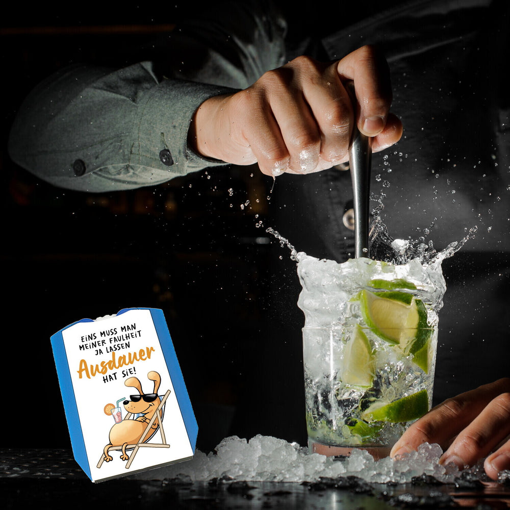 - Der Spruch Eins muss man meiner Faulheit ja lassen: Ausdauer hat sie! ist eine humorvolle Ode an die Kunst des Nichtstuns. Er bedeutet, dass wenn es ums Faulenzen geht, man durchaus Ausdauer beweisen kann - genau wie unser relaxter Hund, der scheinbar den ganzen Tag in der Sonne liegen kann!