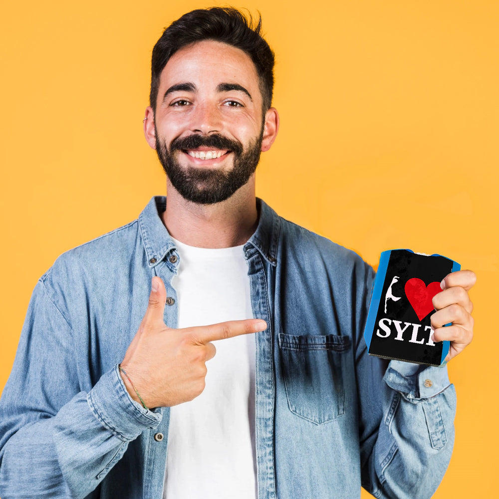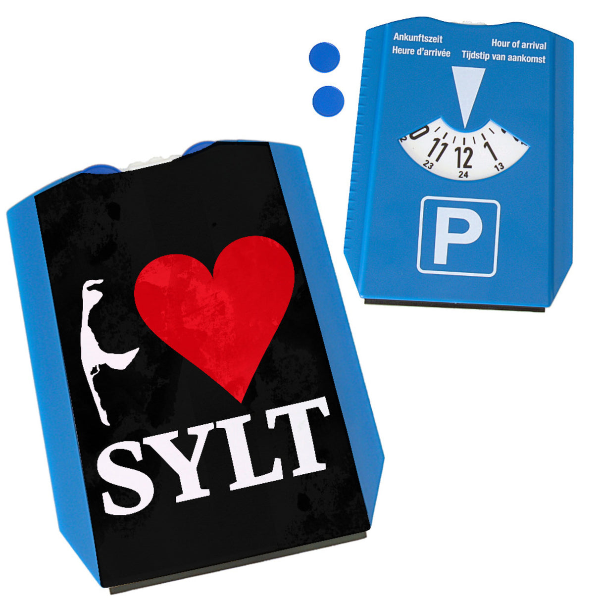 I love Sylt Parkscheibe mit Herz und Inselsilhouette und 2 Einkaufswagenchips