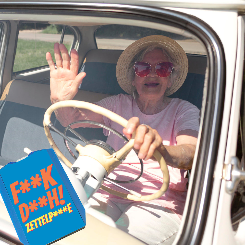 Parkscheibe mit Spruch: F**k D**h! Zettelp***e mit 2 Einkaufswagenchips ist auf Lager und wird versandt, sobald es wieder verfügbar ist