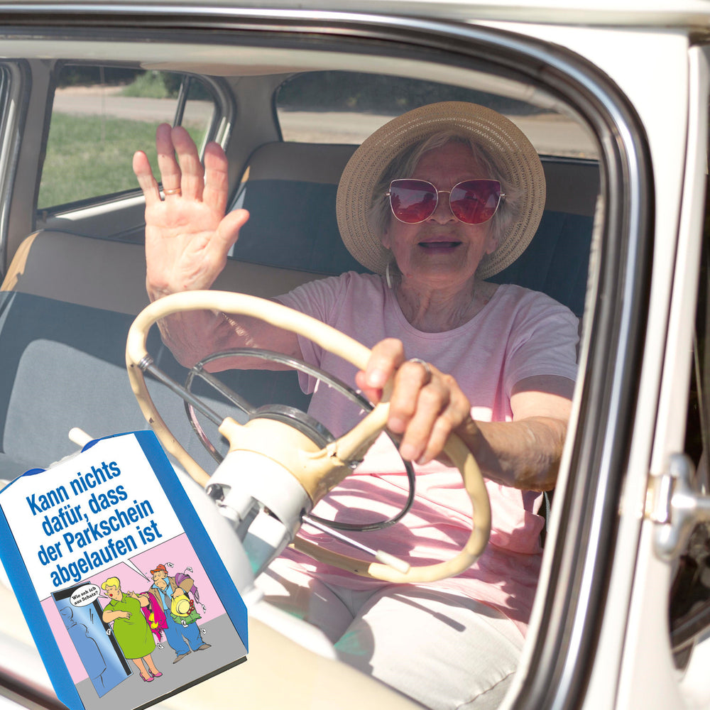Humorvolle Parkscheibe mit Kunstspruch fürs Auto